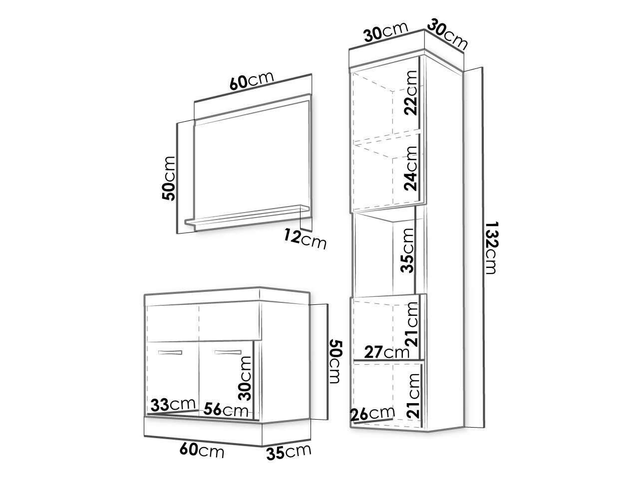 132 x 30 x 30 cm