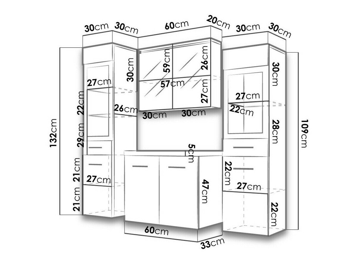 132 x 30 x 30; 109 x 30 x 30; 60 x 60 x 20 cm
