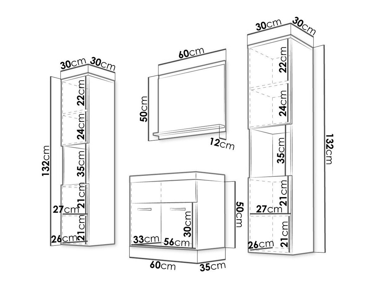 Badeværelsessæt Sarasota 123 (Hvid + Gloss grå)