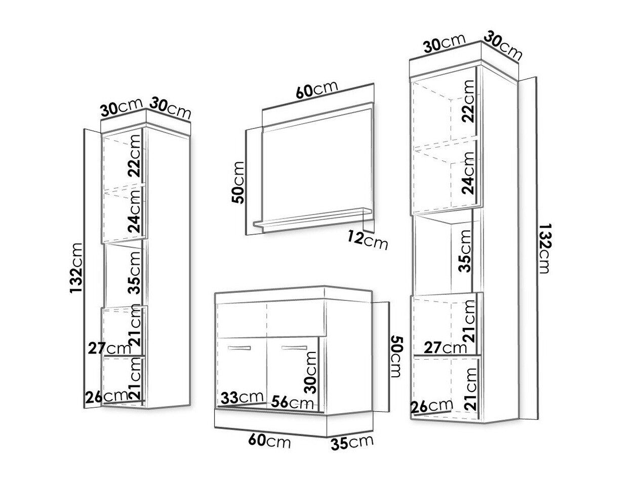 132 x 30 x 30 cm