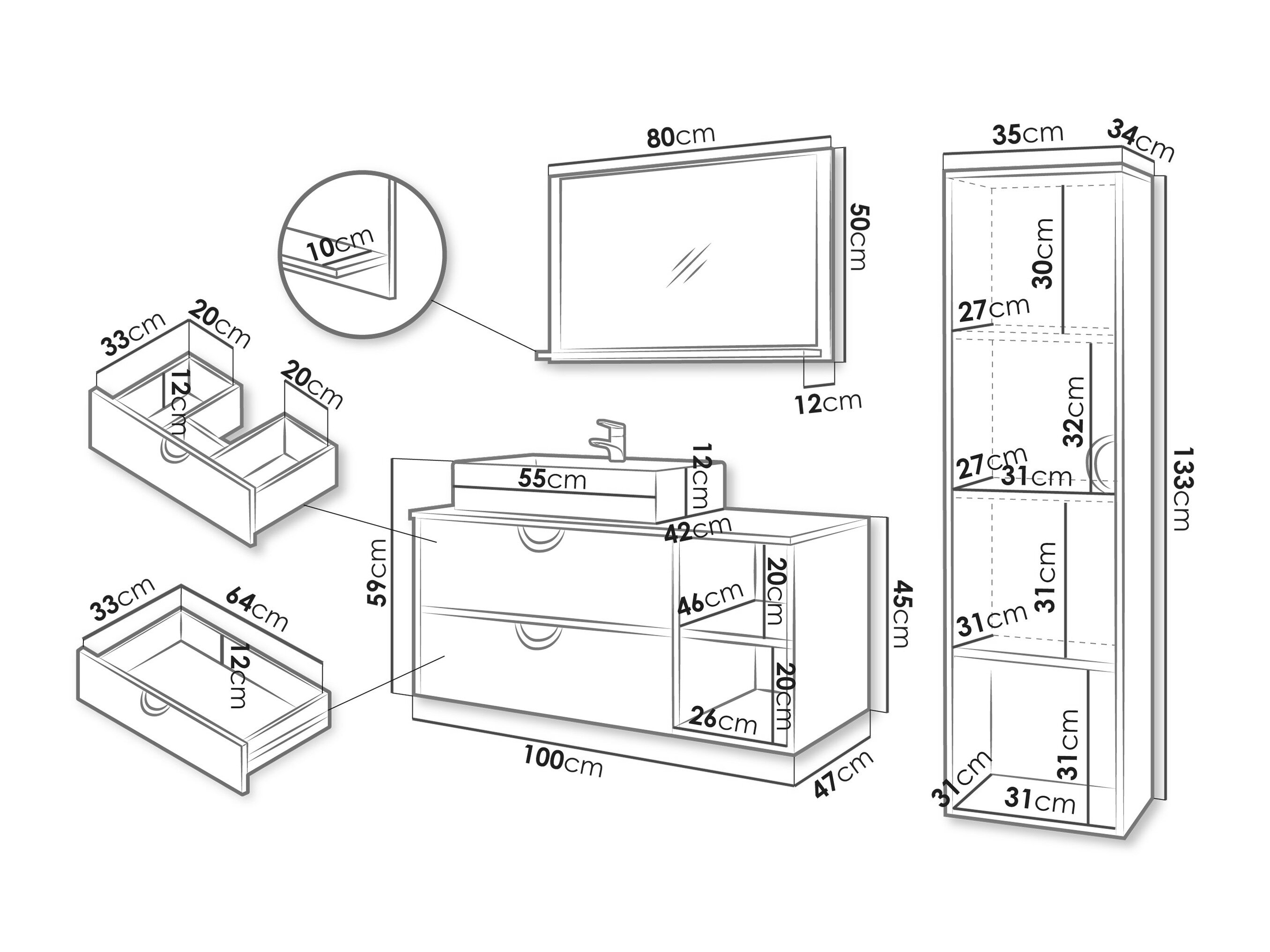 Håndvask skab dimensioner: