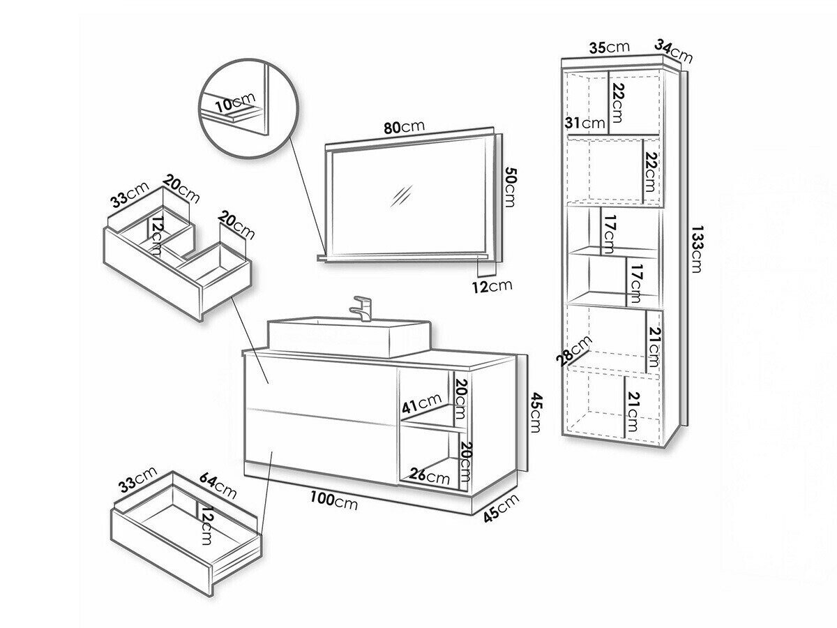 Håndvask skab dimensioner: