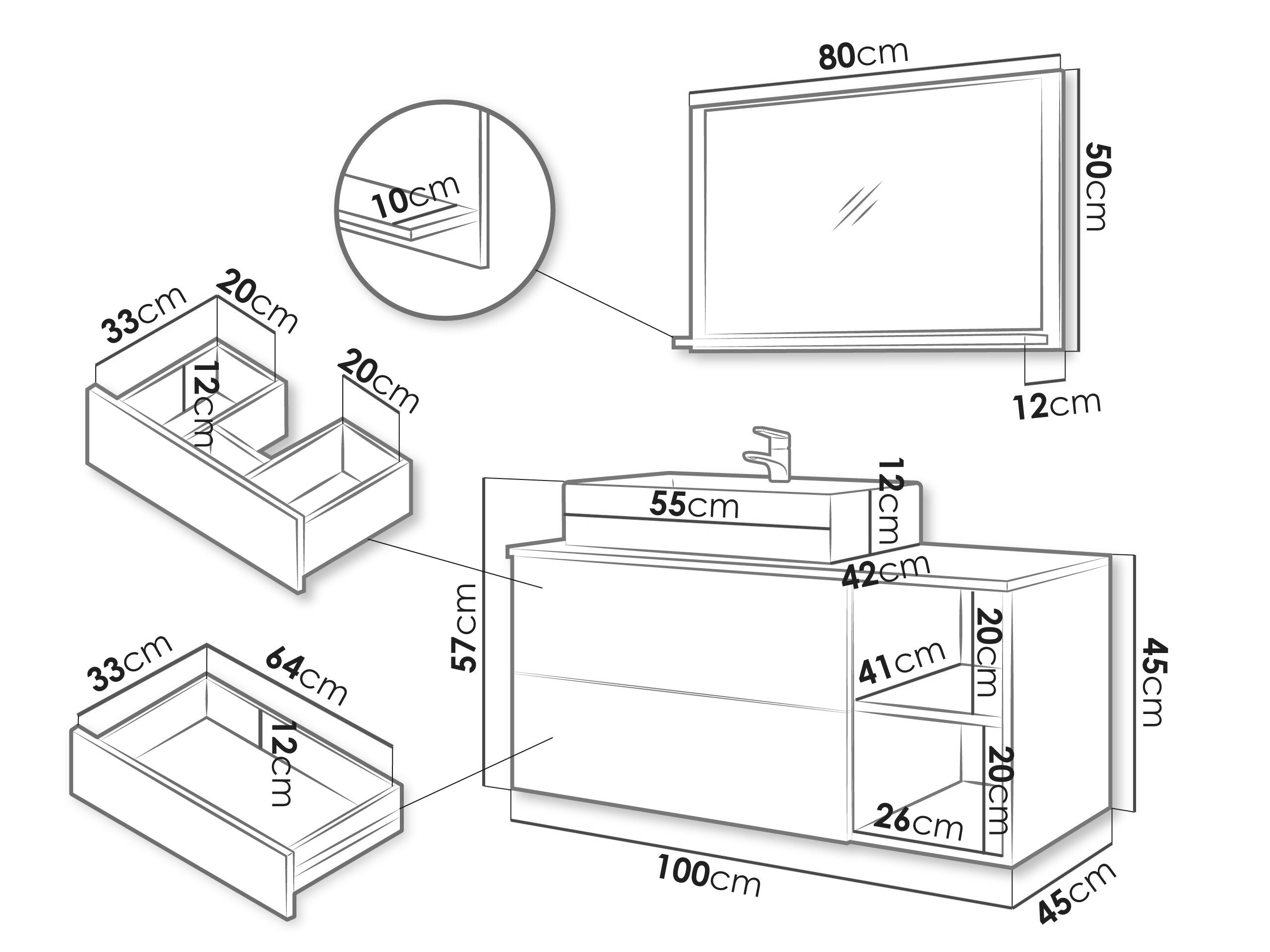 Håndvask skab dimensioner: