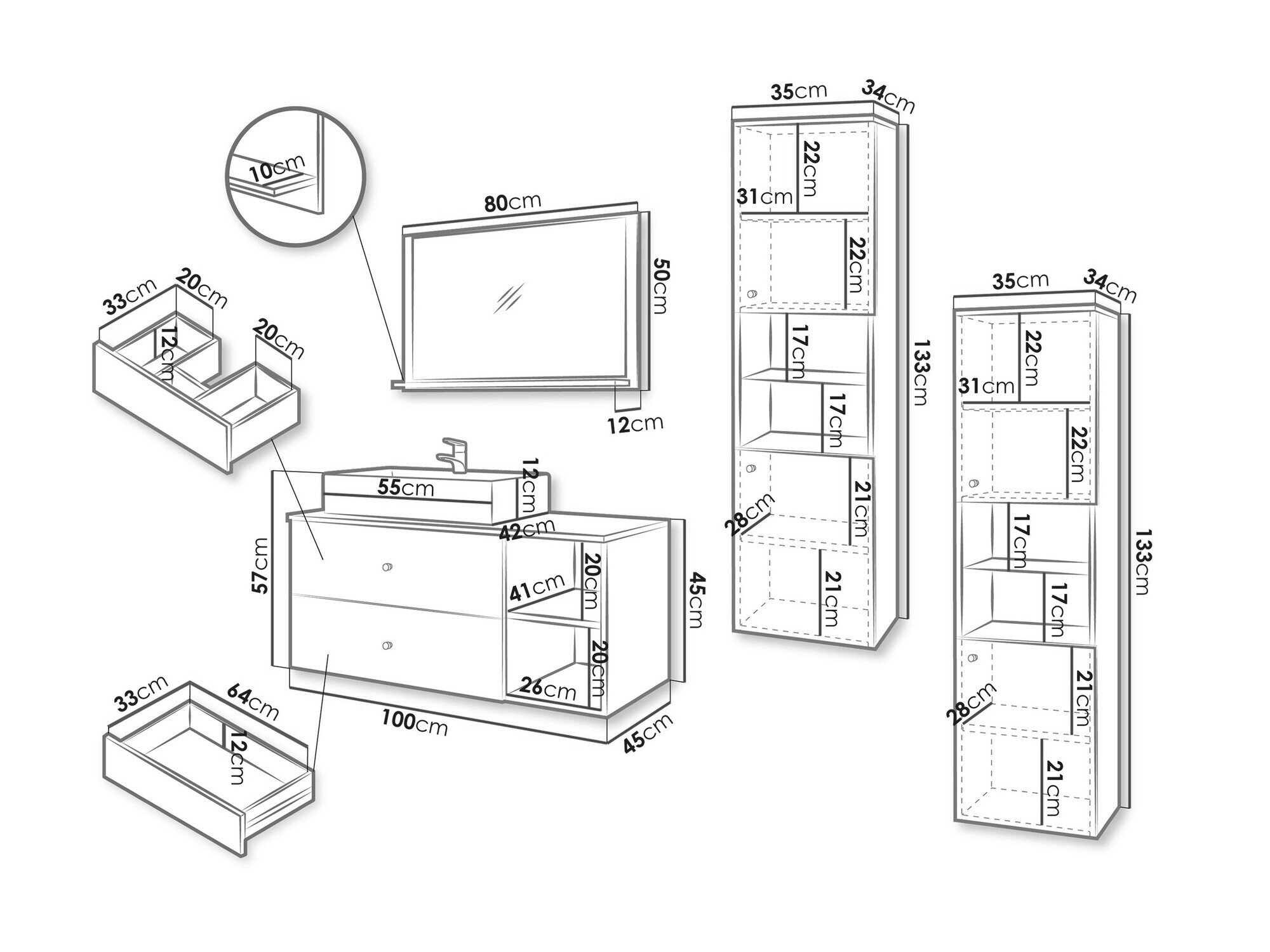 Håndvask skab dimensioner: