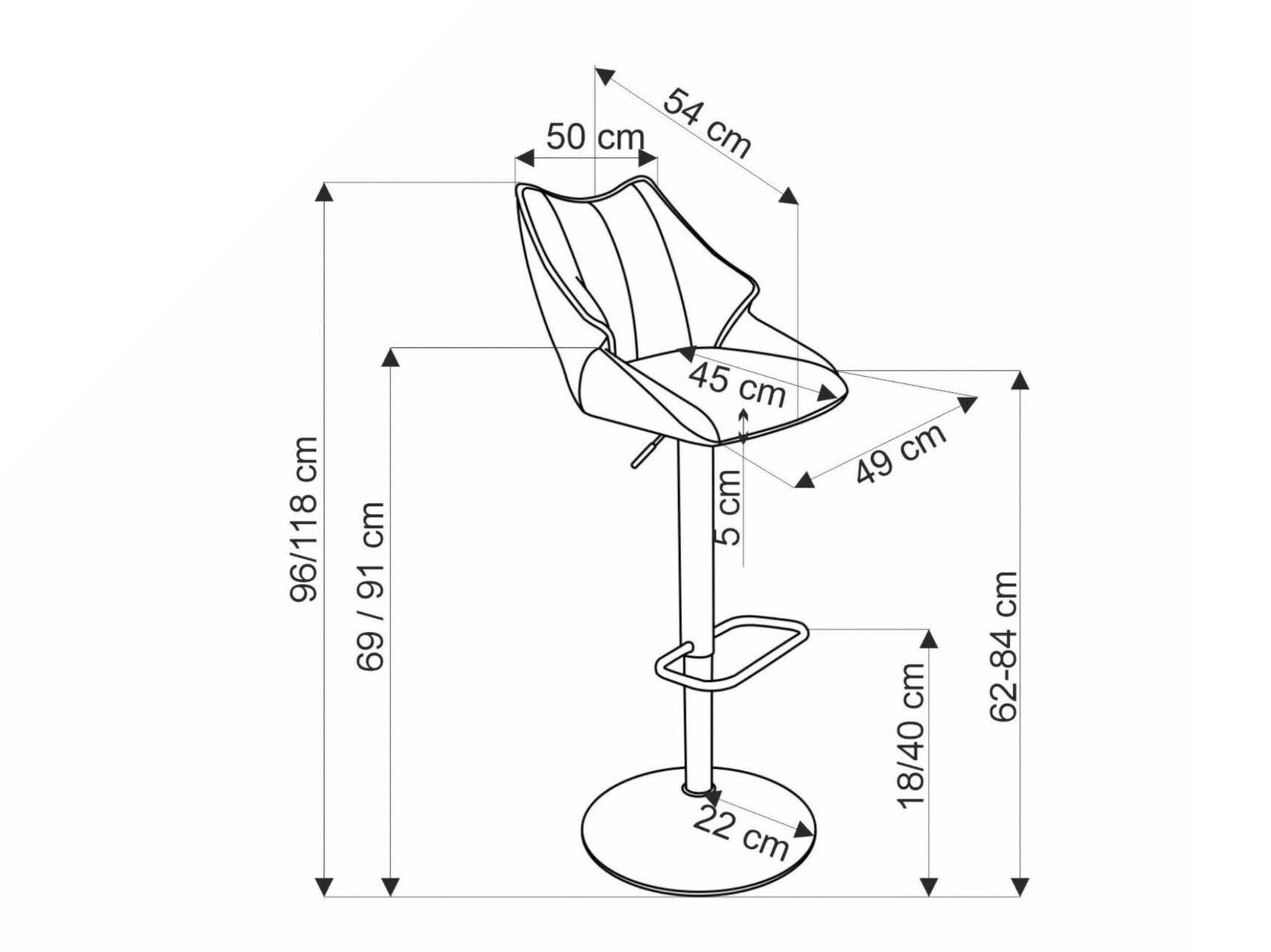 Maksimal sædehøjde: