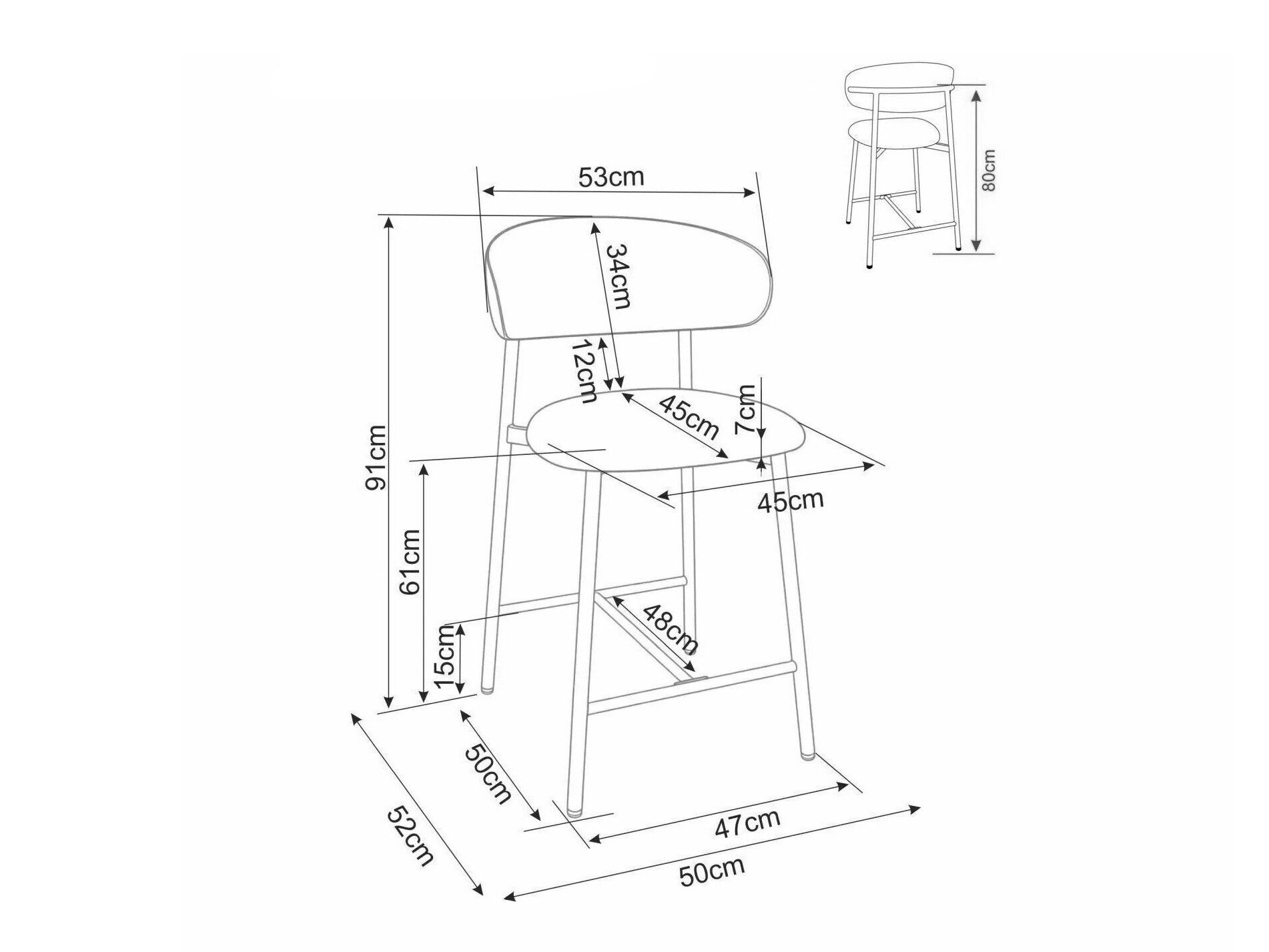 91 cm  50 cm  52 cm