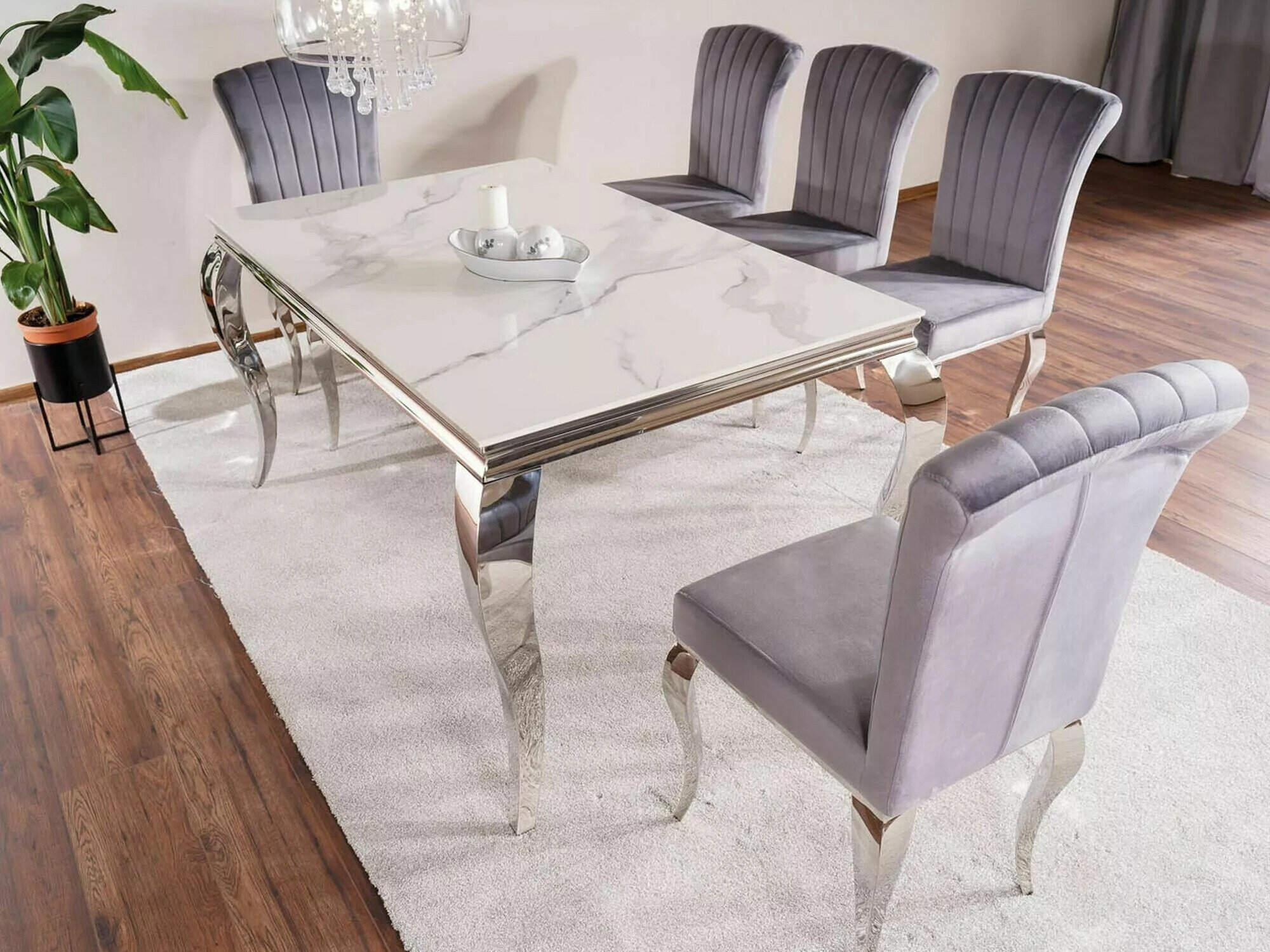 Bord Detroit 323 (Sølv + Hvid marmor)