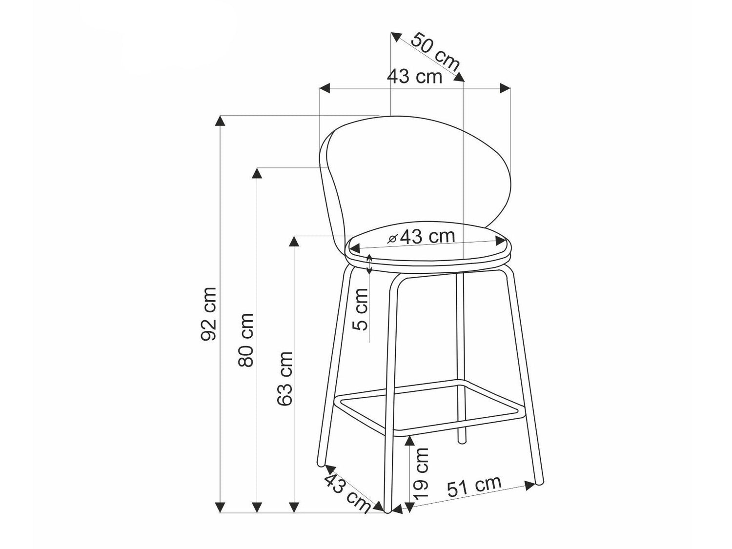 Tykkelse på sæde5 cm