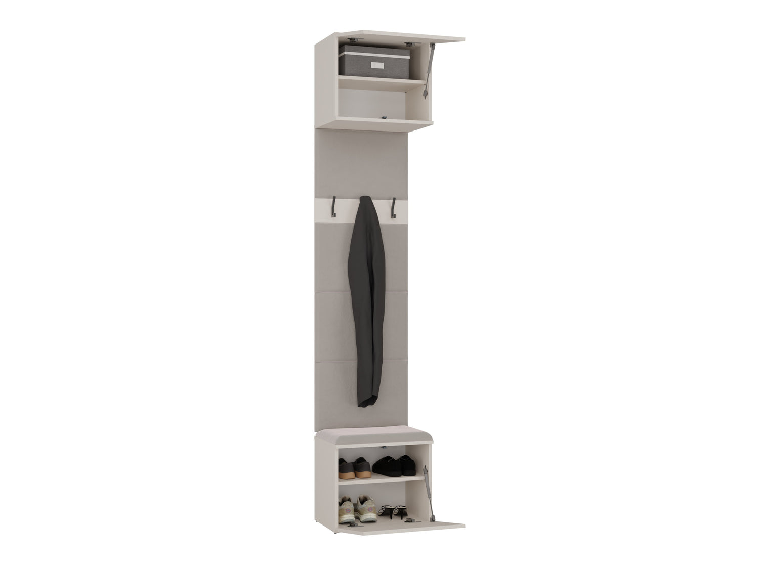 Åbn døre og skuffer med et enkelt tryk. "Push to open"-systemet består af en kombination af en fjeder og en magnetisk mekanisme til at trykke og holde døren. Også hængsler med særlige trykfjedre til at åbne døren. Takket være denne mekanisme har møblerne ikke brug for håndtag. Du kan åbne og lukke døre og skuffer med et enkelt klik.