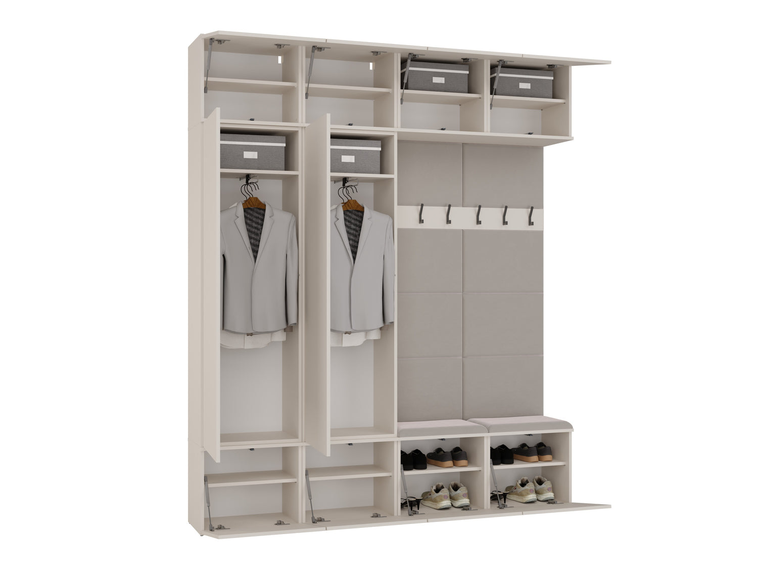 Åbn døre og skuffer med et enkelt tryk. "Push to open"-systemet består af en kombination af en fjeder og en magnetisk mekanisme til at trykke og holde døren. Også hængsler med særlige trykfjedre til at åbne døren. Takket være denne mekanisme har møblerne ikke brug for håndtag. Du kan åbne og lukke døre og skuffer med et enkelt klik.