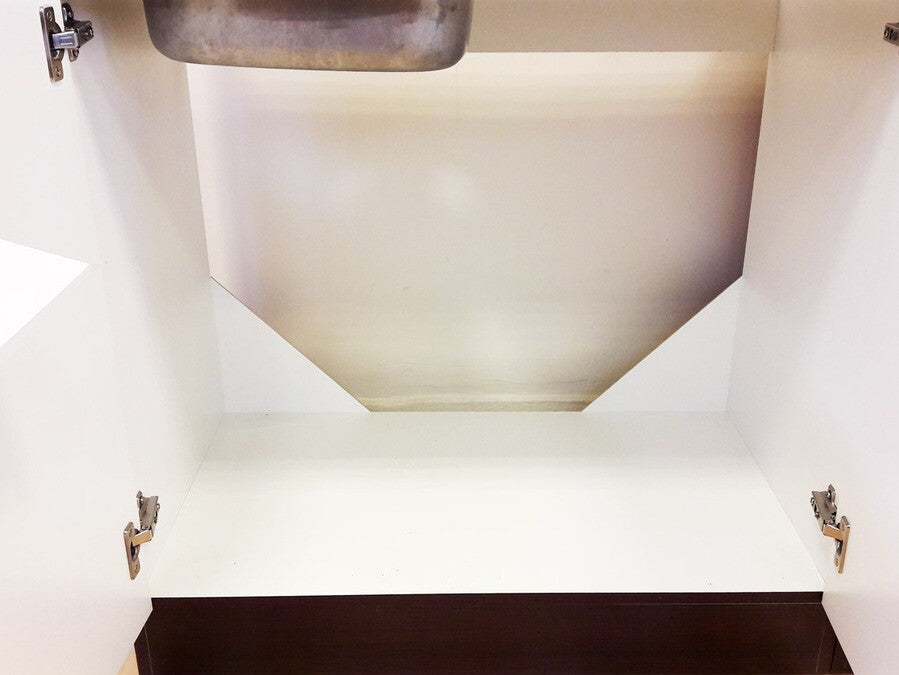 Køkkenmøbler kan ofte købes som et sæt eller ved at kombinere skabe separat. I begge muligheder er der et mellemrum bag hvert køkkenskab langs væggen, designet til VVS. Den større dybde i skabe til indbyggede apparater og hjørneenheder skyldes, at disse skabe ikke har mellemrum til rørføring. Dette mellemrum er skjult af bordpladen ovenfra. Hvis skabe sælges uden bordplader, skal disse købes og fastgøres separat. Bordpladen fastgøres med skruer og sælges uden forudskårne områder til vaske eller kogeplader. Når du køber et hjørneskab, er det vigtigt at købe en bordpladesamler for at eliminere eventuelle mellemrum i hjørnet.