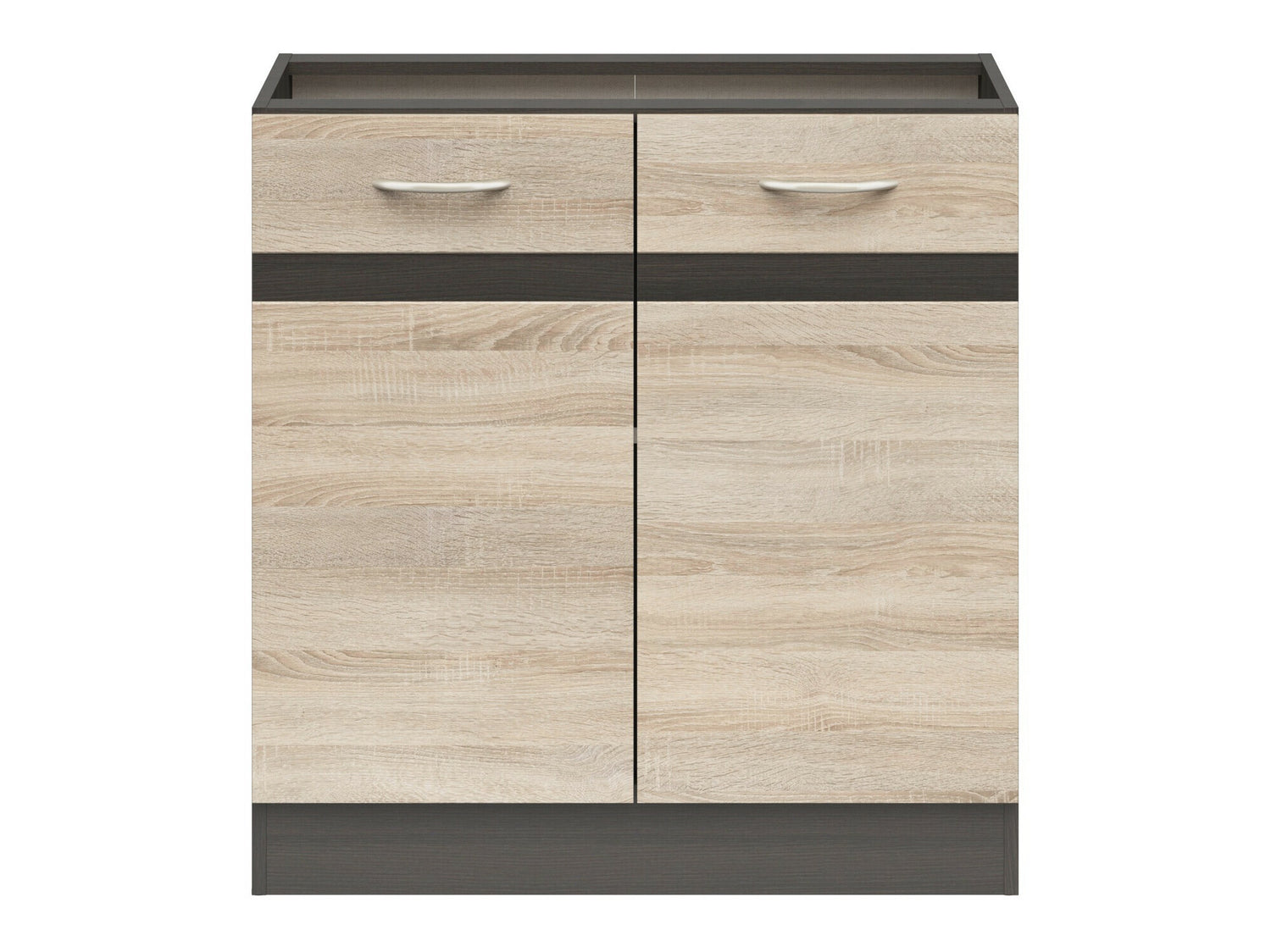 Køkkenmøbler kan ofte købes som et sæt eller ved at kombinere skabe separat. I begge muligheder er der et mellemrum bag hvert køkkenskab langs væggen, designet til VVS. Den større dybde i skabe til indbyggede apparater og hjørneenheder skyldes, at disse skabe ikke har mellemrum til rørføring. Dette mellemrum er skjult af bordpladen ovenfra. Hvis skabe sælges uden bordplader, skal disse købes og fastgøres separat. Bordpladen fastgøres med skruer og sælges uden forudskårne områder til vaske eller kogeplader. Når du køber et hjørneskab, er det vigtigt at købe en bordpladesamler for at eliminere eventuelle mellemrum i hjørnet.