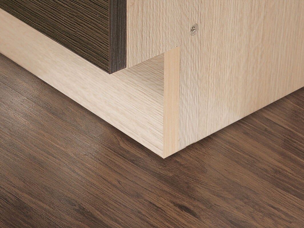 Køkkenmøbler kan ofte købes som et sæt eller ved at kombinere skabe separat. I begge muligheder er der et mellemrum bag hvert køkkenskab langs væggen, designet til VVS. Den større dybde i skabe til indbyggede apparater og hjørneenheder skyldes, at disse skabe ikke har mellemrum til rørføring. Dette mellemrum er skjult af bordpladen ovenfra. Hvis skabe sælges uden bordplader, skal disse købes og fastgøres separat. Bordpladen fastgøres med skruer og sælges uden forudskårne områder til vaske eller kogeplader. Når du køber et hjørneskab, er det vigtigt at købe en bordpladesamler for at eliminere eventuelle mellemrum i hjørnet.