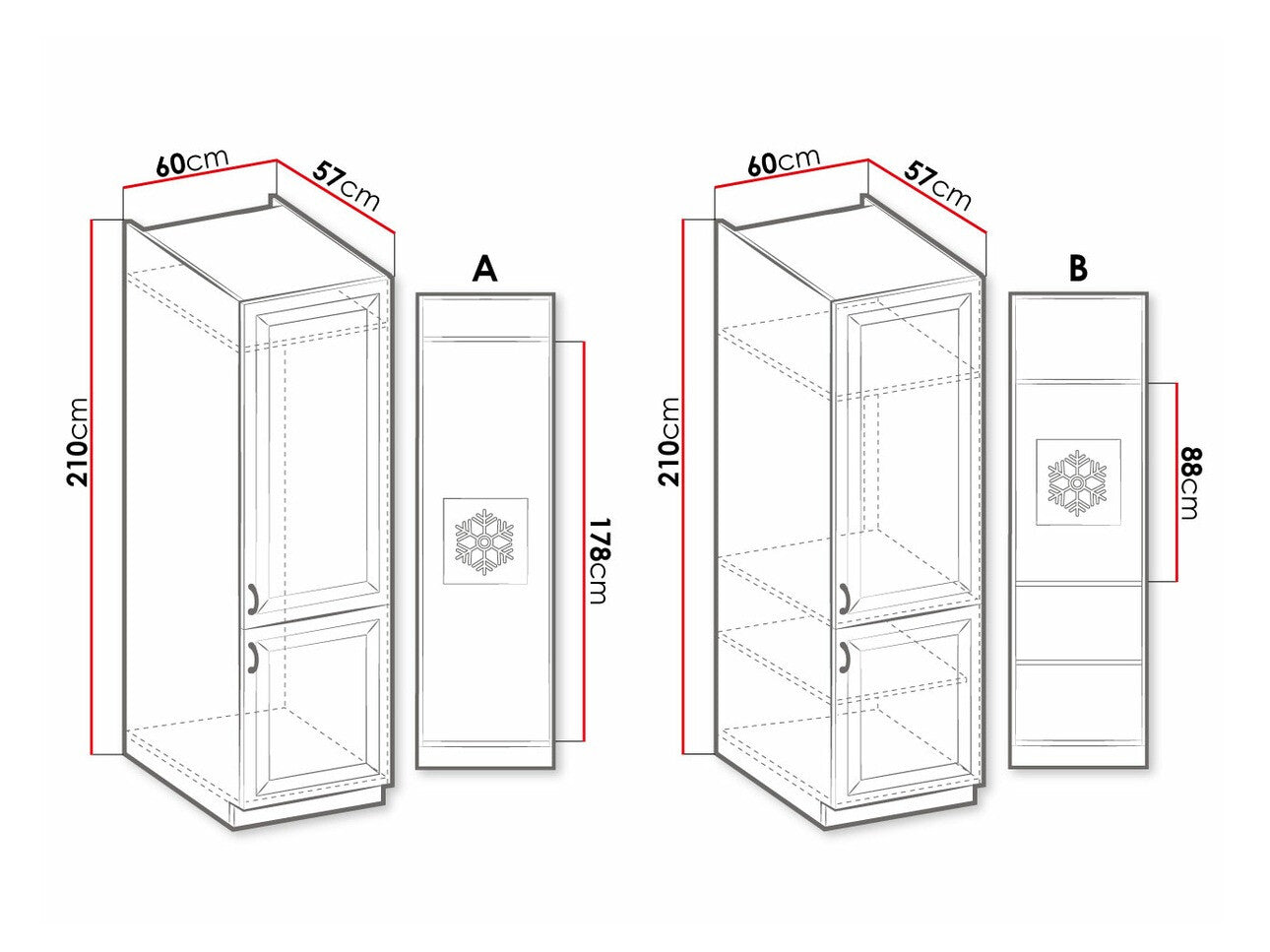 Køkkenmøbler kan ofte købes som et sæt eller ved at kombinere skabe separat. I begge muligheder er der et mellemrum bag hvert køkkenskab langs væggen, designet til VVS. Den større dybde i skabe til indbyggede apparater og hjørneenheder skyldes, at disse skabe ikke har mellemrum til rørføring. Dette mellemrum er skjult af bordpladen ovenfra. Hvis skabe sælges uden bordplader, skal disse købes og fastgøres separat. Bordpladen fastgøres med skruer og sælges uden forudskårne områder til vaske eller kogeplader. Når du køber et hjørneskab, er det vigtigt at købe en bordpladesamler for at eliminere eventuelle mellemrum i hjørnet.