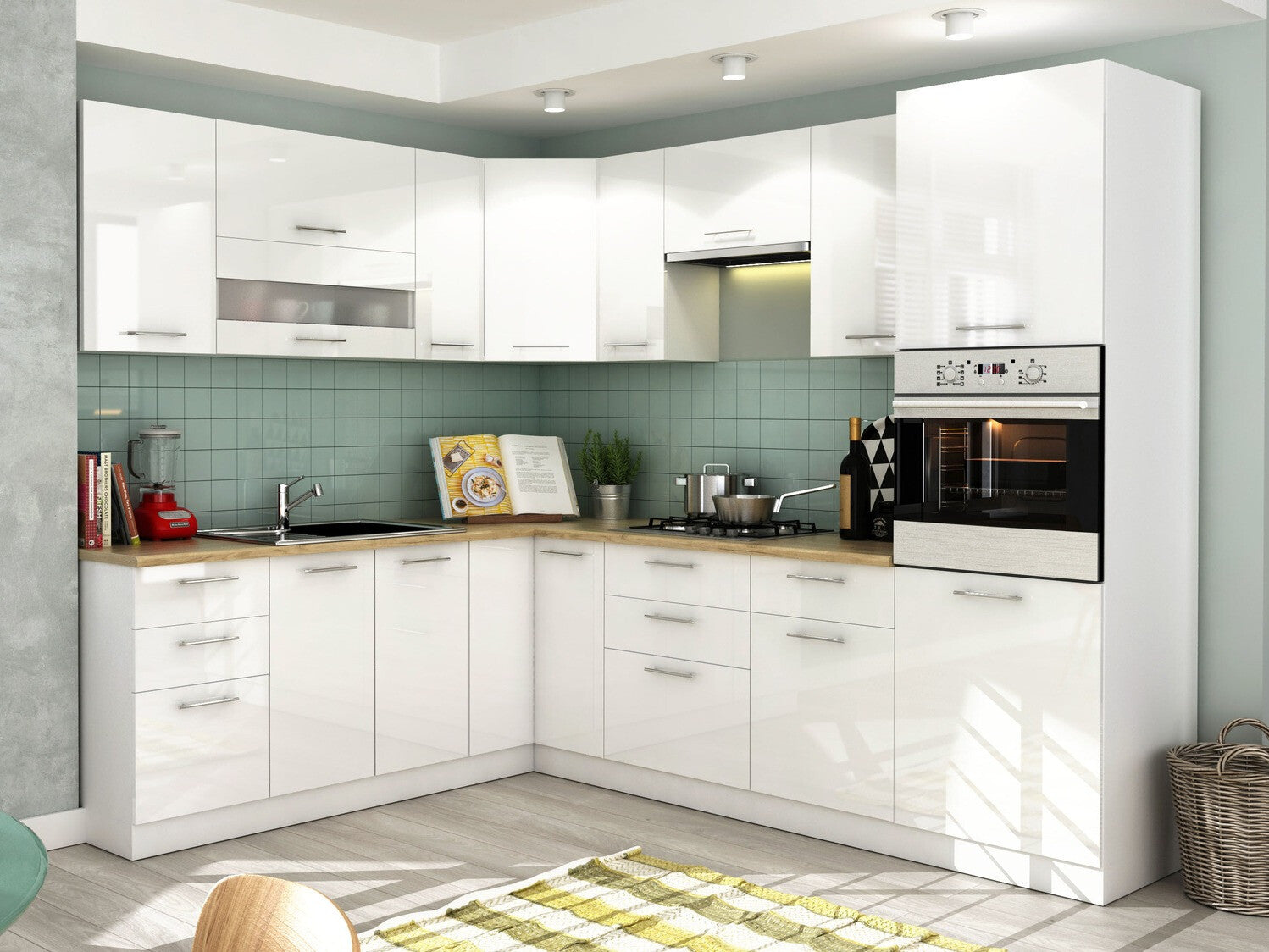 Køkkenmøbler kan ofte købes som et sæt eller ved at kombinere skabe separat. I begge muligheder er der et mellemrum bag hvert køkkenskab langs væggen, designet til VVS. Den større dybde i skabe til indbyggede apparater og hjørneenheder skyldes, at disse skabe ikke har mellemrum til rørføring. Dette mellemrum er skjult af bordpladen ovenfra. Hvis skabe sælges uden bordplader, skal disse købes og fastgøres separat. Bordpladen fastgøres med skruer og sælges uden forudskårne områder til vaske eller kogeplader. Når du køber et hjørneskab, er det vigtigt at købe en bordpladesamler for at eliminere eventuelle mellemrum i hjørnet.