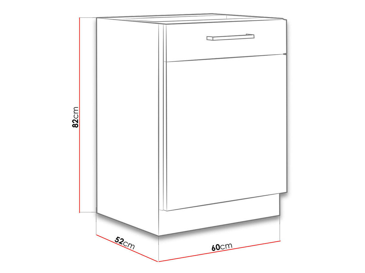 Køkkenmøbler kan ofte købes som et sæt eller ved at kombinere skabe separat. I begge muligheder er der et mellemrum bag hvert køkkenskab langs væggen, designet til VVS. Den større dybde i skabe til indbyggede apparater og hjørneenheder skyldes, at disse skabe ikke har mellemrum til rørføring. Dette mellemrum er skjult af bordpladen ovenfra. Hvis skabe sælges uden bordplader, skal disse købes og fastgøres separat. Bordpladen fastgøres med skruer og sælges uden forudskårne områder til vaske eller kogeplader. Når du køber et hjørneskab, er det vigtigt at købe en bordpladesamler for at eliminere eventuelle mellemrum i hjørnet.