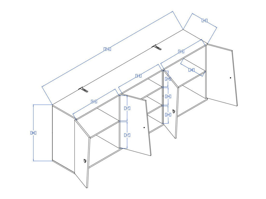 Hængende skabs dimensioner80 x 214 x 40 cm