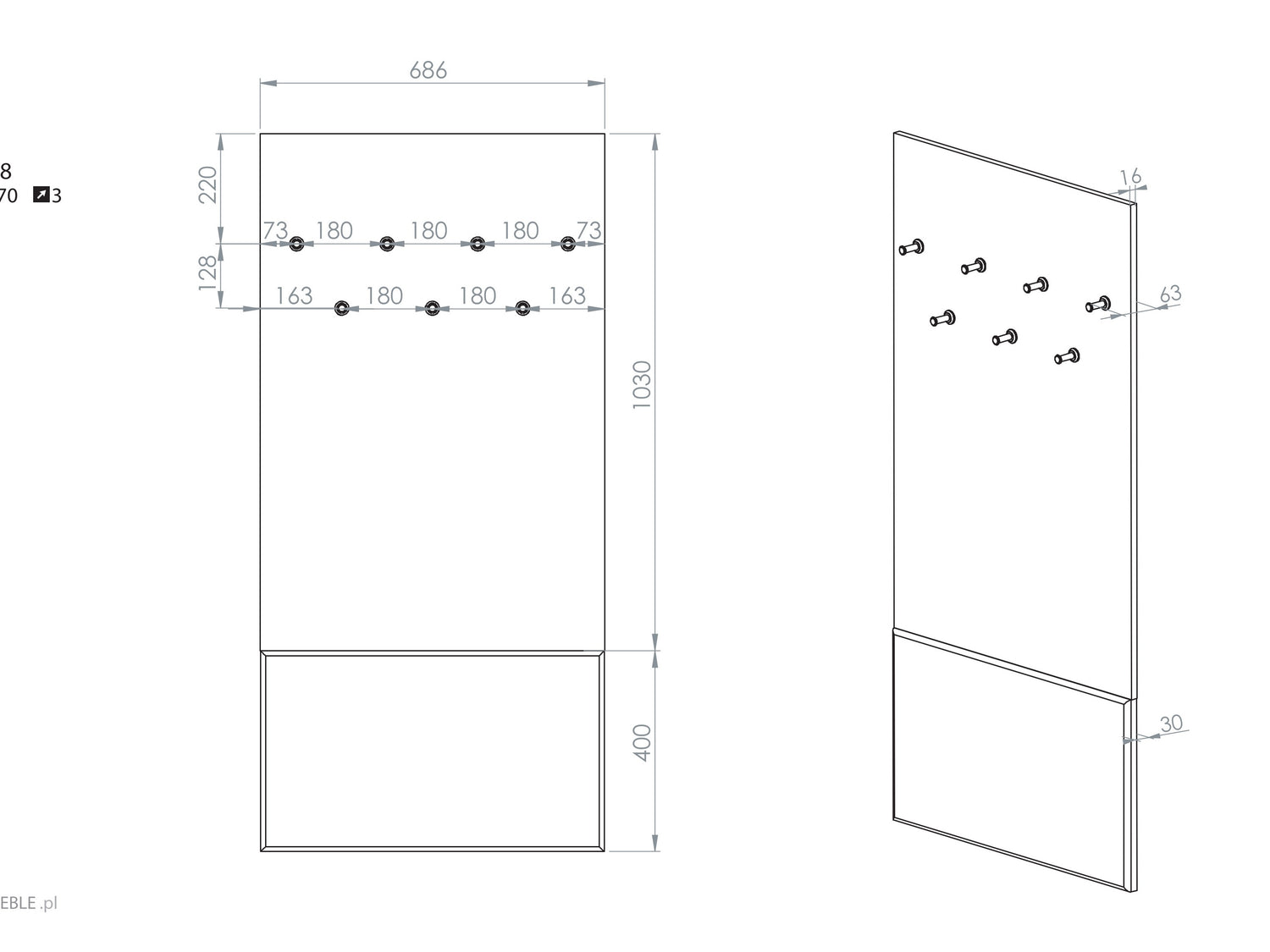 Type tøjbøjleVæghængt knagerække