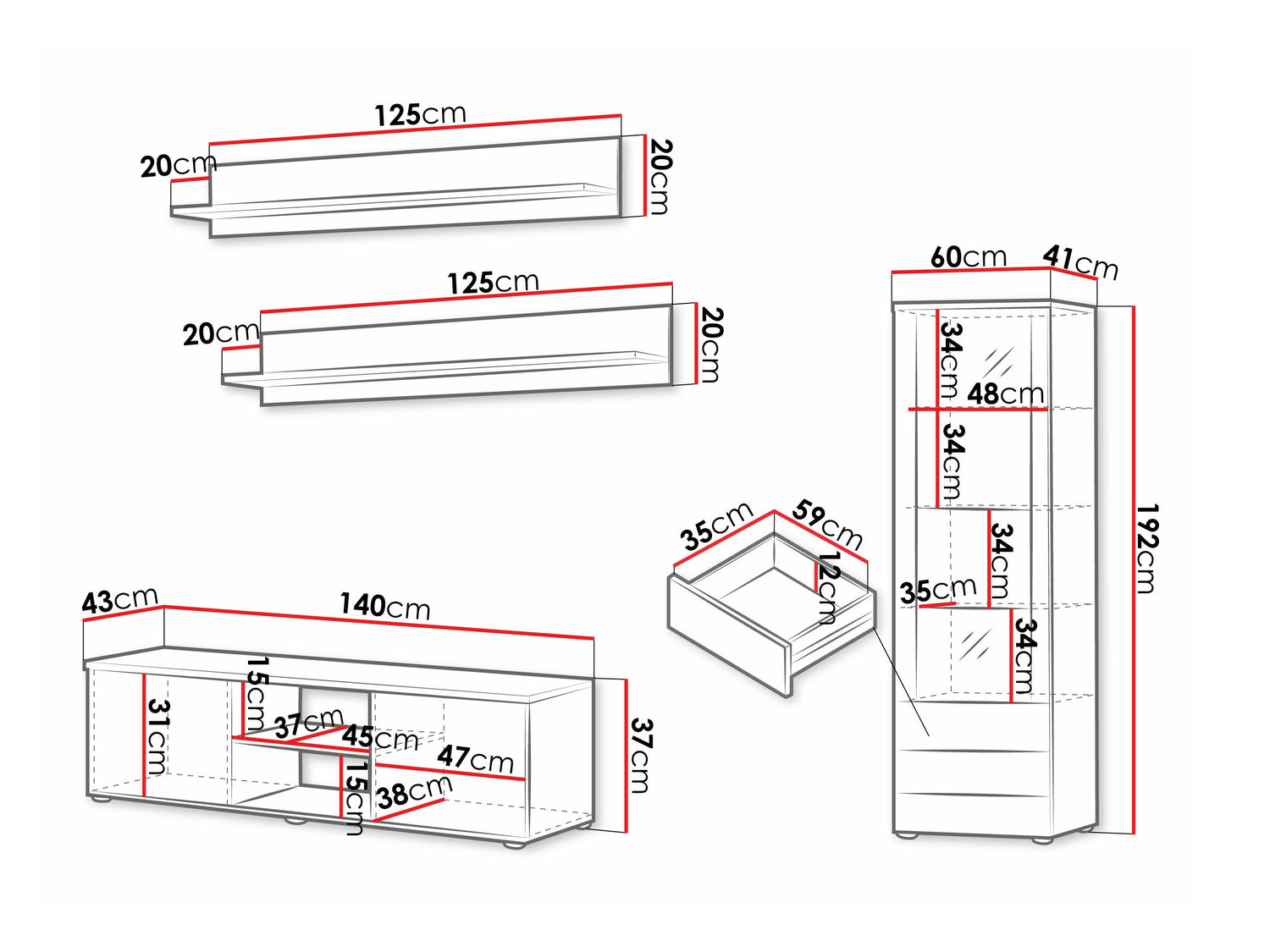 Reol dimensioner192 x 60 x 41 cm
