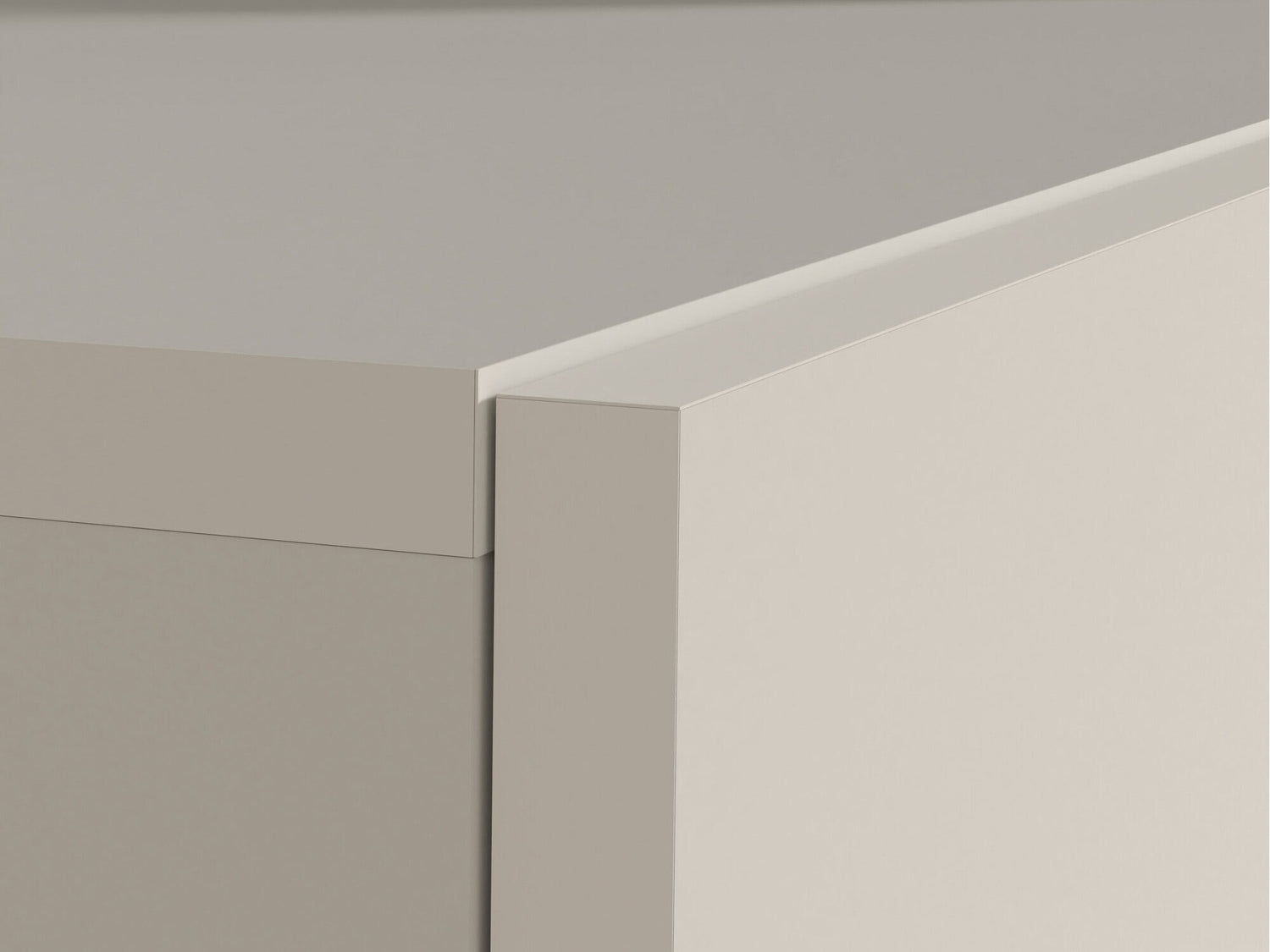 Kanterne på møblerne er dækket af efterbehandlings tape, dette materiale er lavet af stærk plast, som normalt bruges til at beskytte kanterne på møbelpladerne.