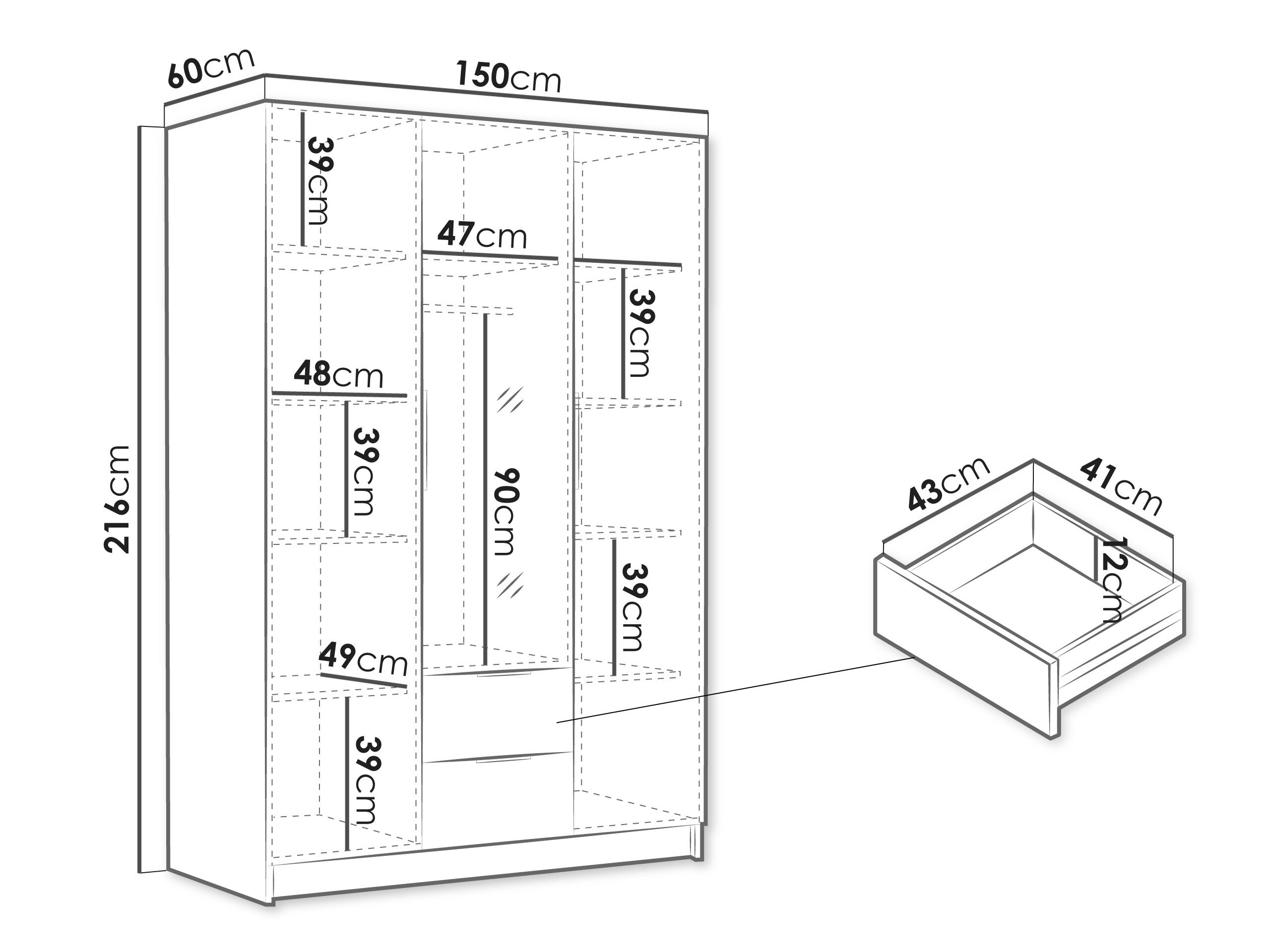 216 cm  150 cm  60 cm