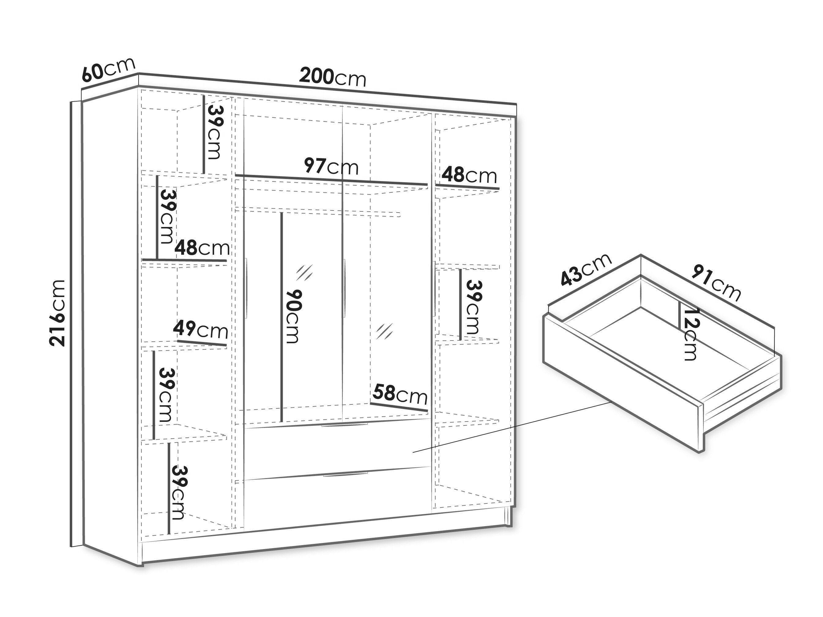 216 cm  200 cm  60 cm