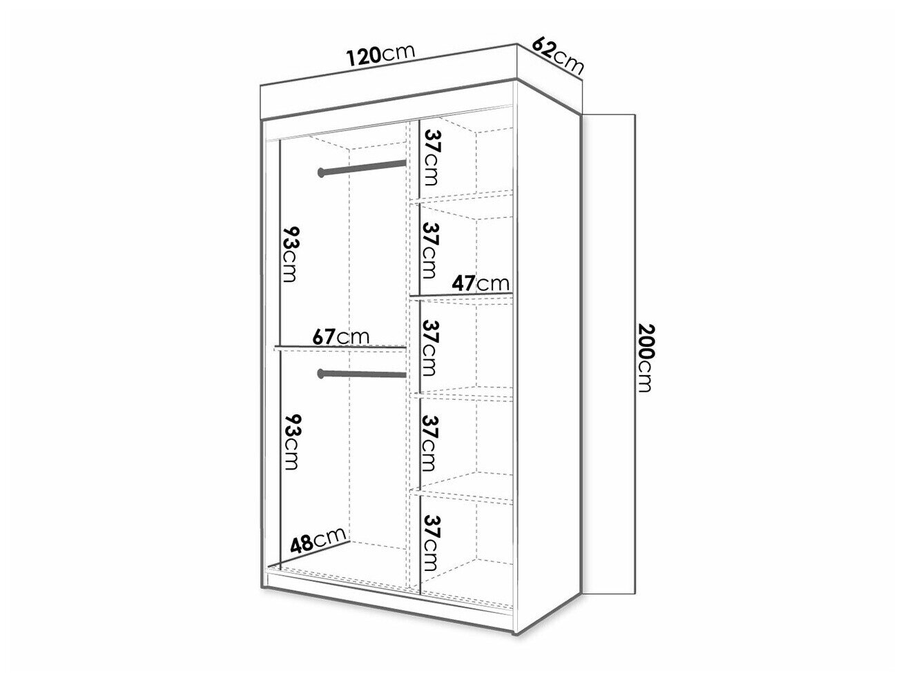 200 cm  120 cm  62 cm