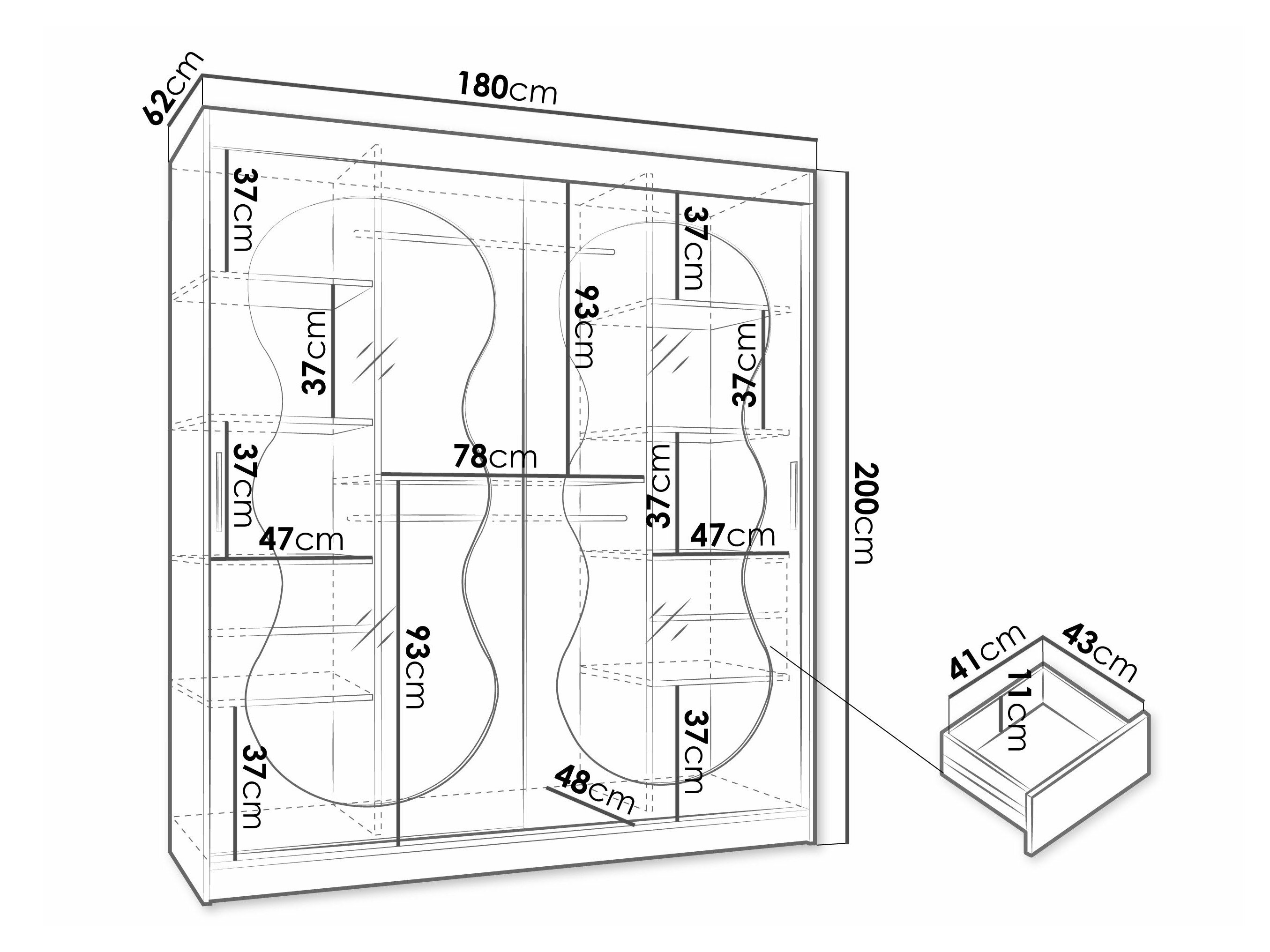 200 cm  180 cm  62 cm