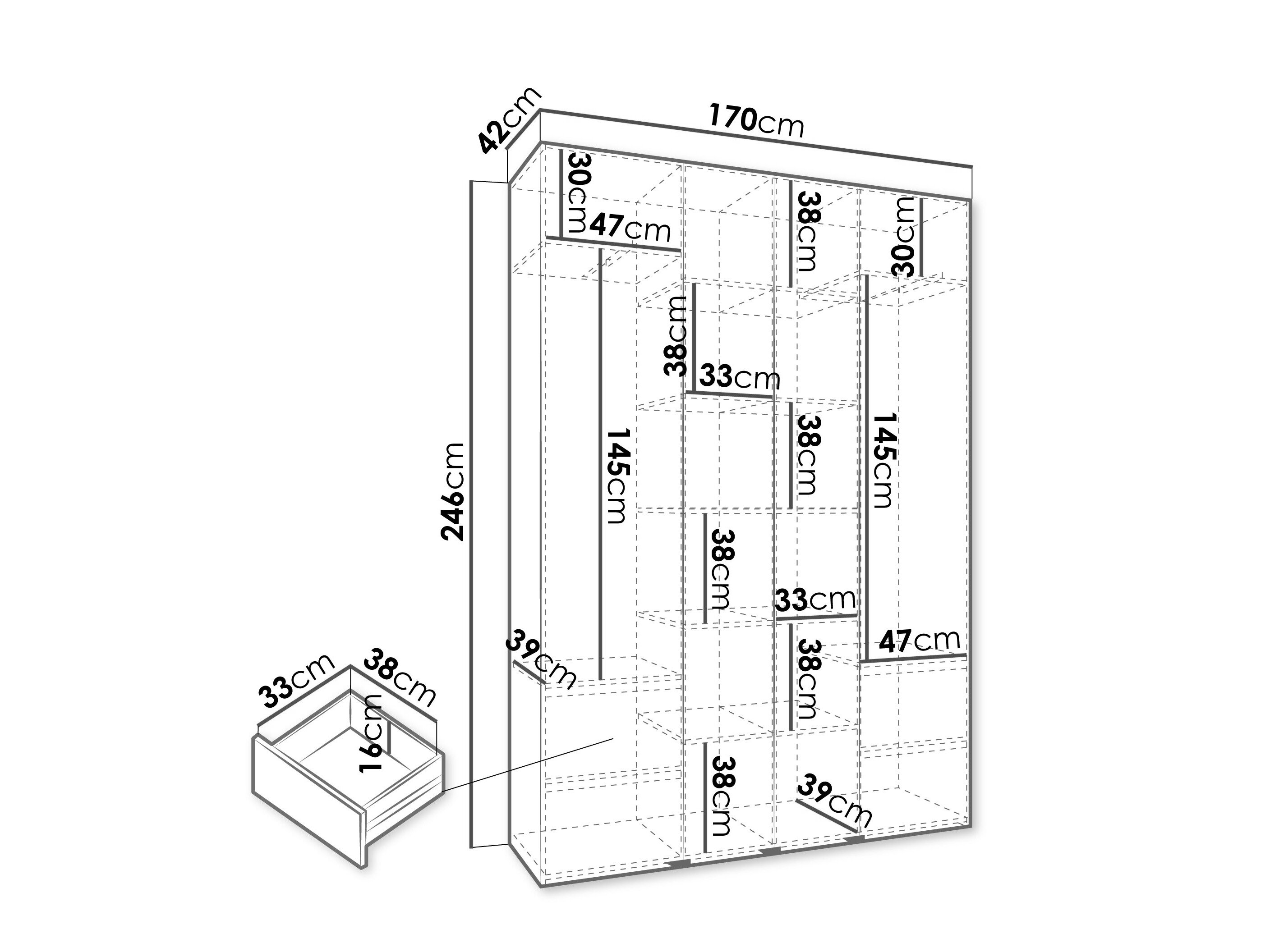 246 cm  170 cm  42 cm