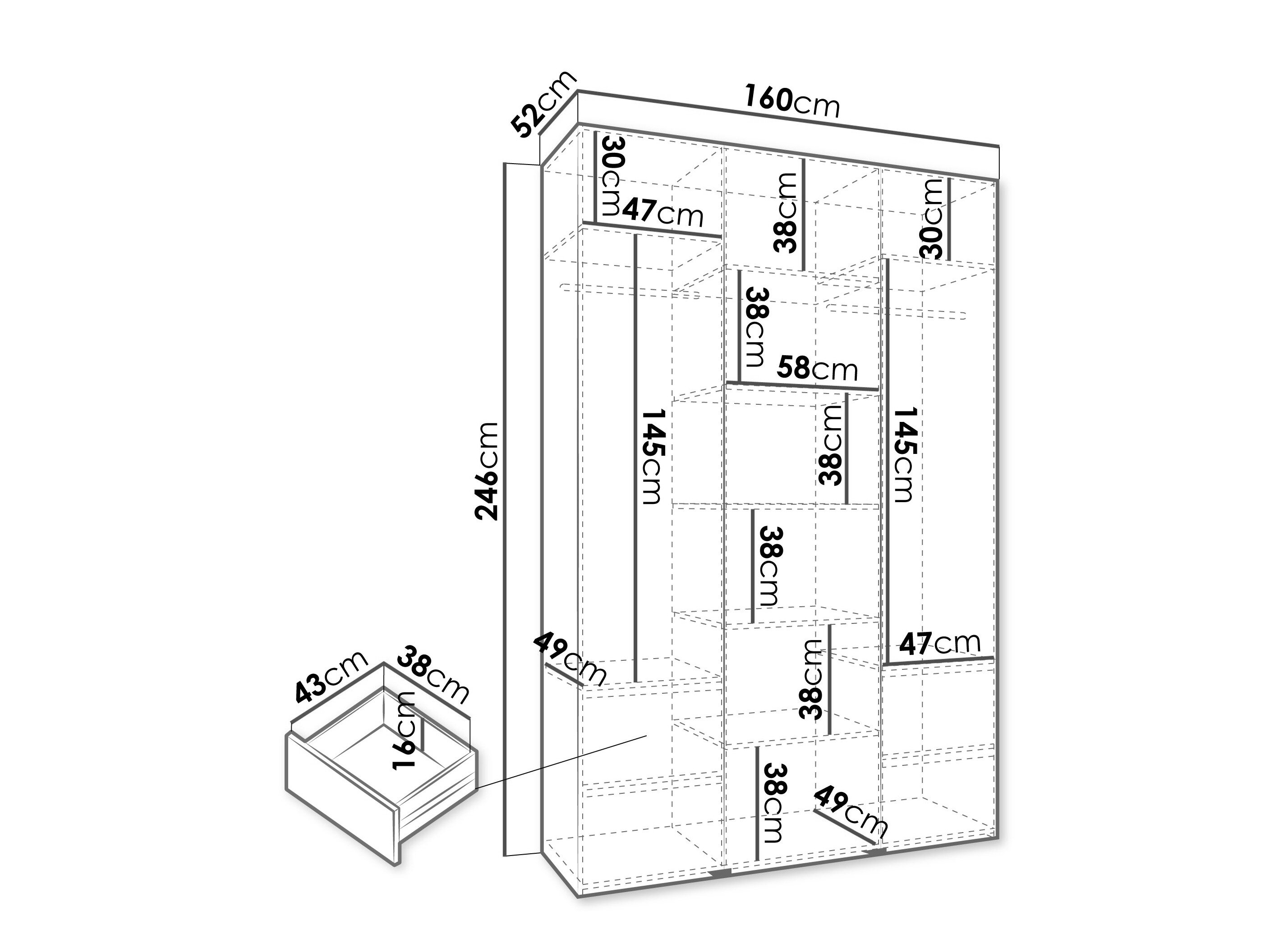 246 cm  160 cm  52 cm