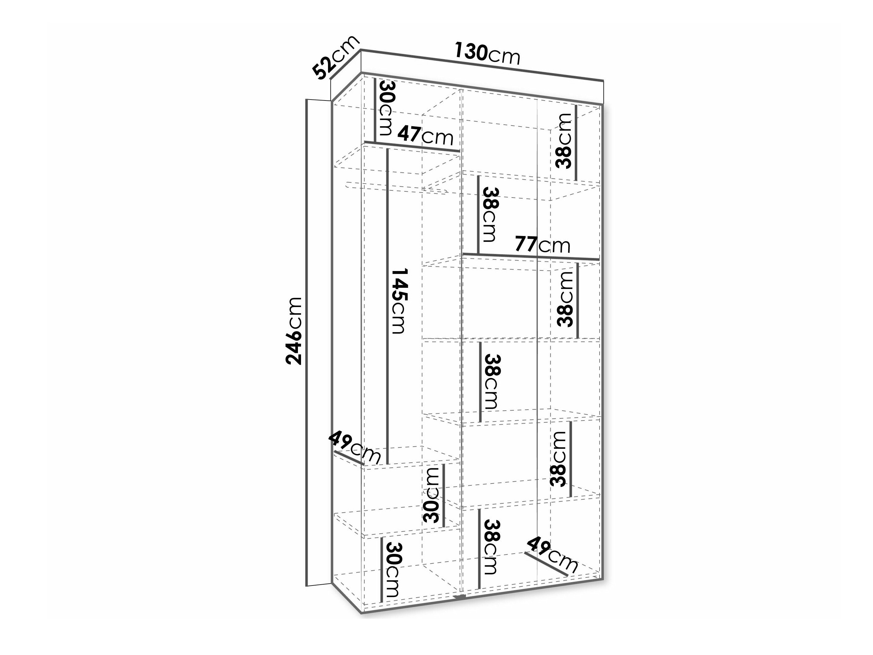246 cm  100 cm  52 cm