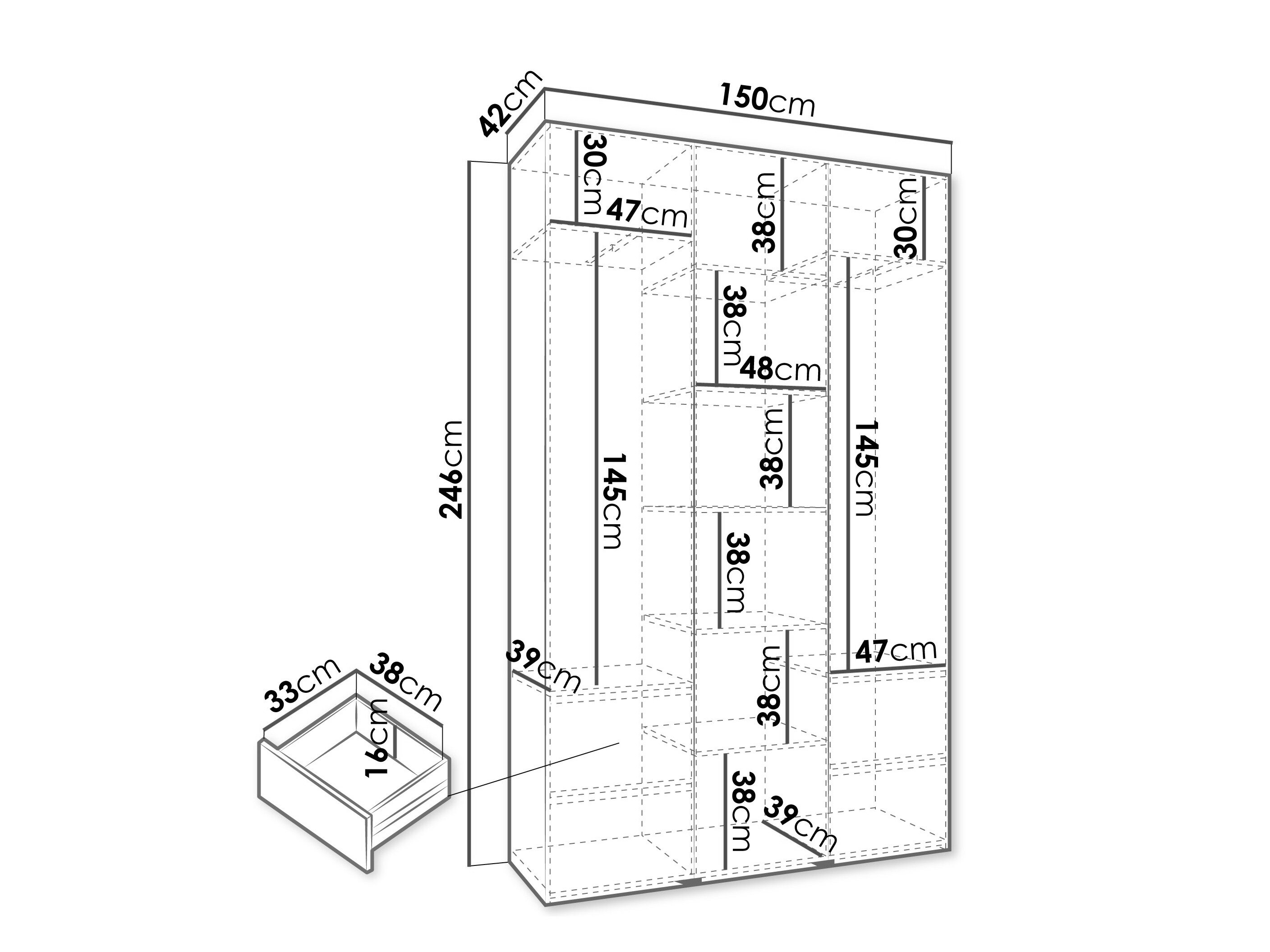 246 cm  160 cm  42 cm