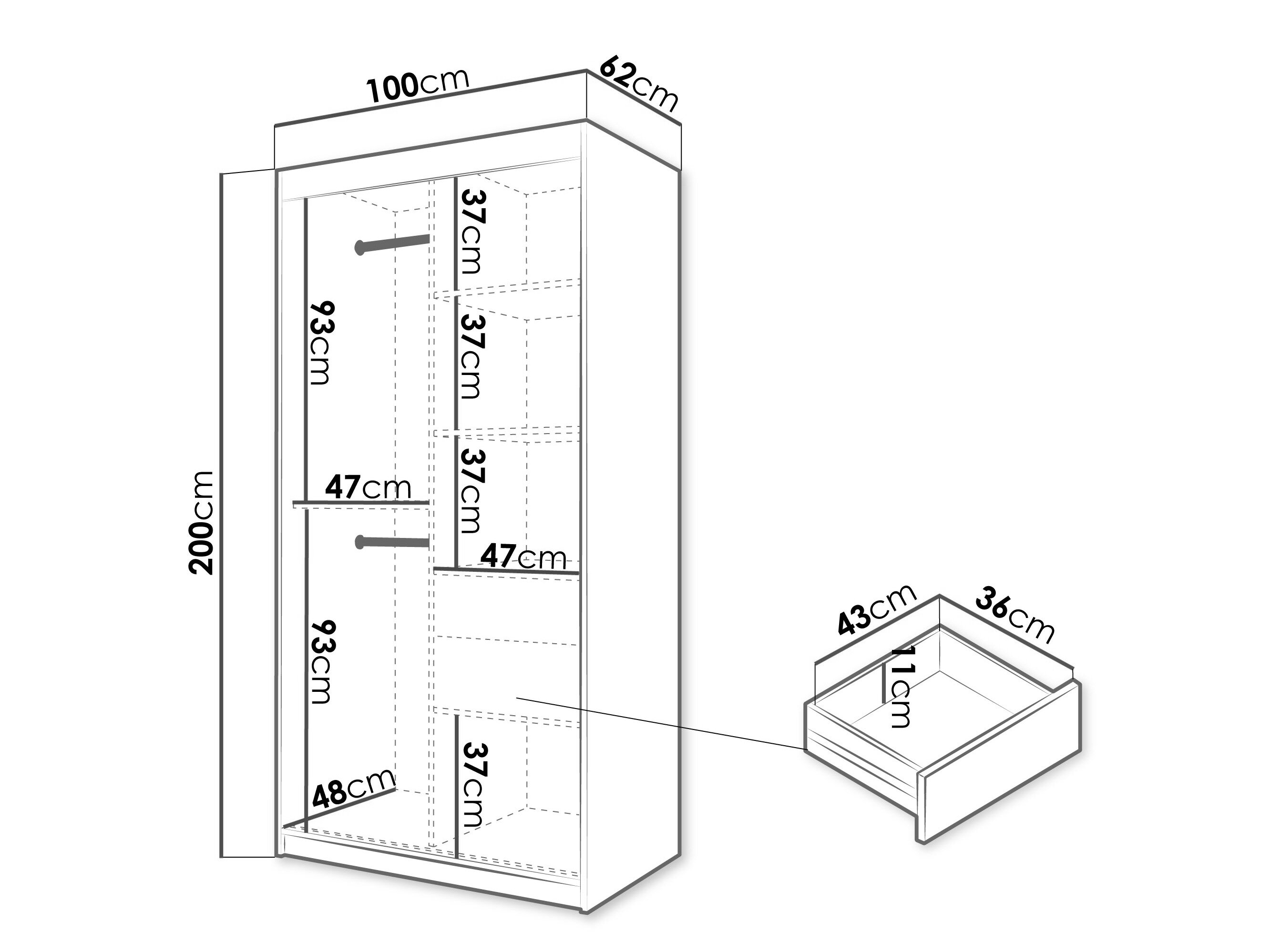 200 cm  100 cm  62 cm