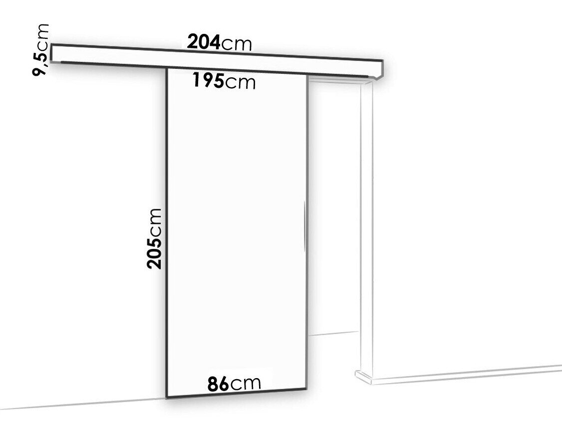 Skydedørssystemets dimensioner:
