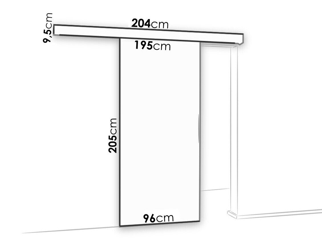 Skydedørssystemets dimensioner: