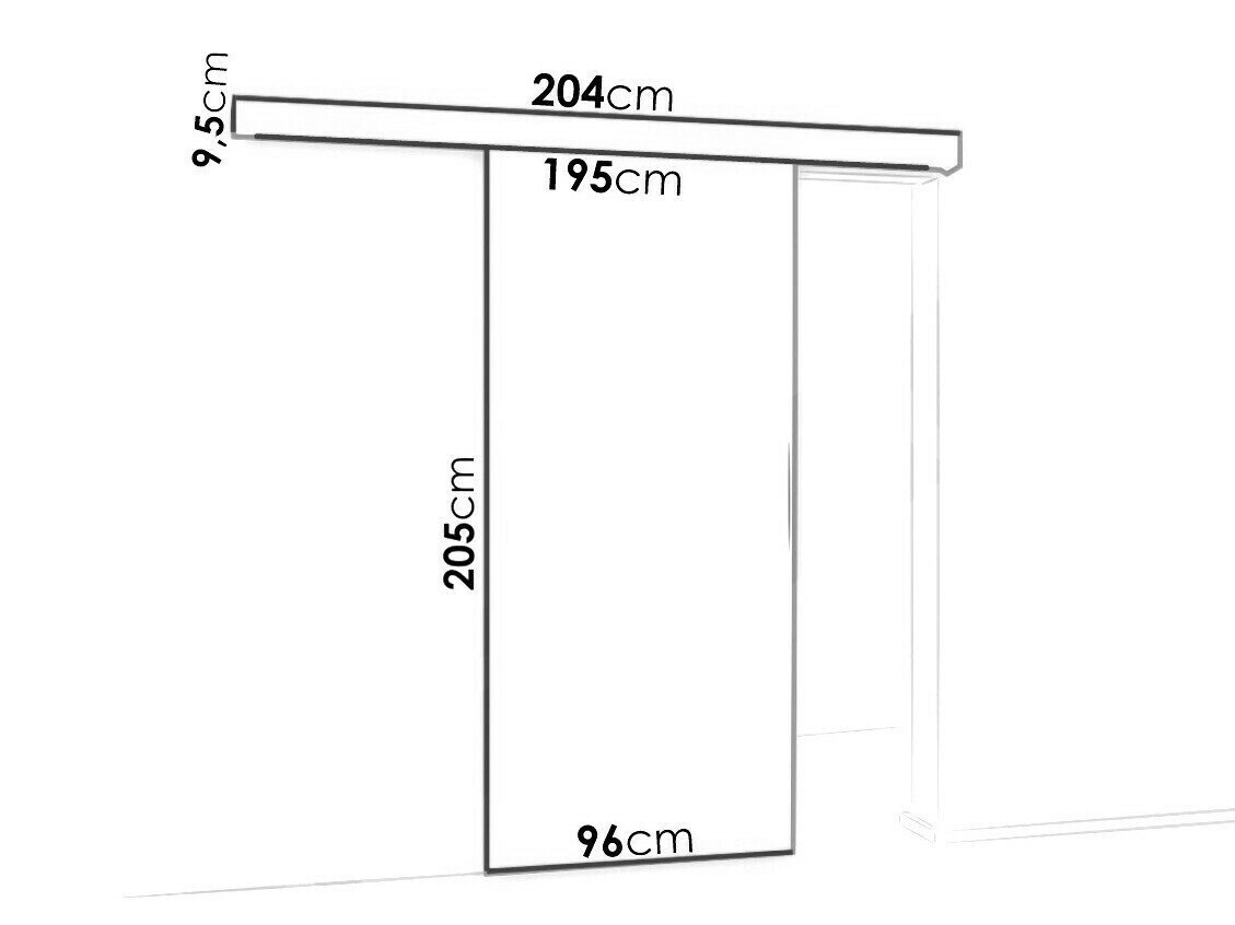 Skydedørssystemets dimensioner:
