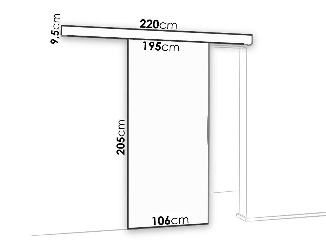 Skydedørssystemets dimensioner: