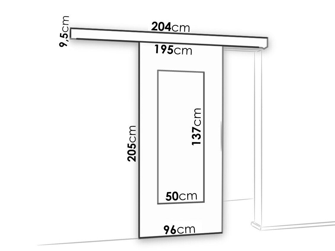 Skydedørssystemets dimensioner:
