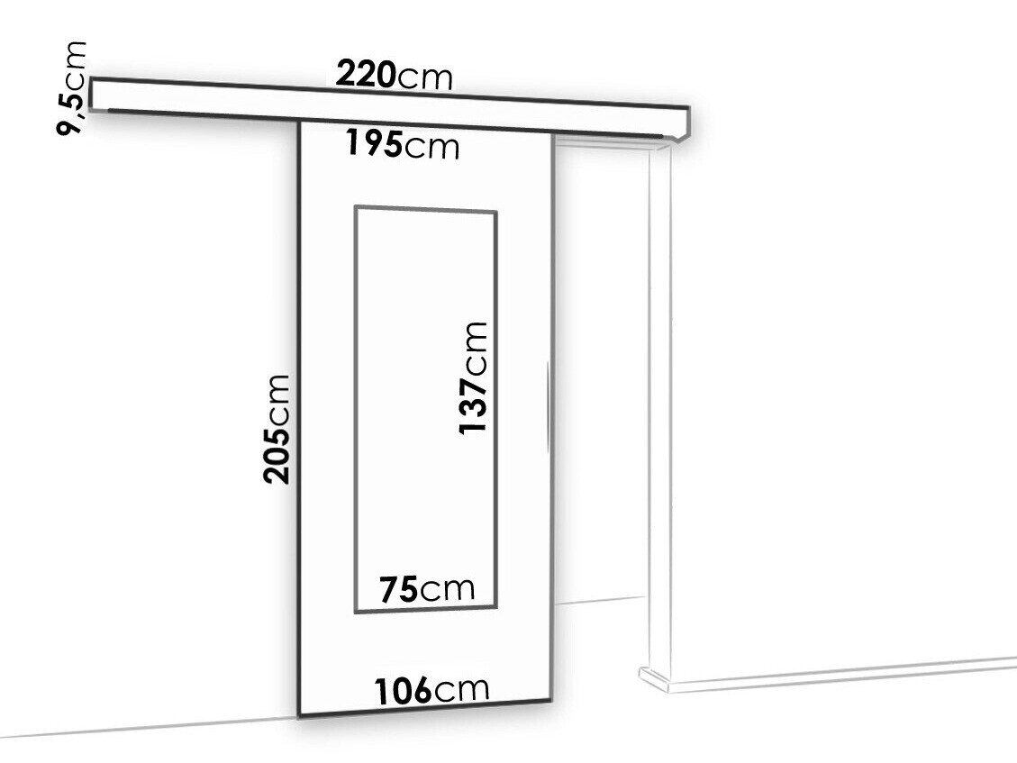 Skydedørssystemets dimensioner:
