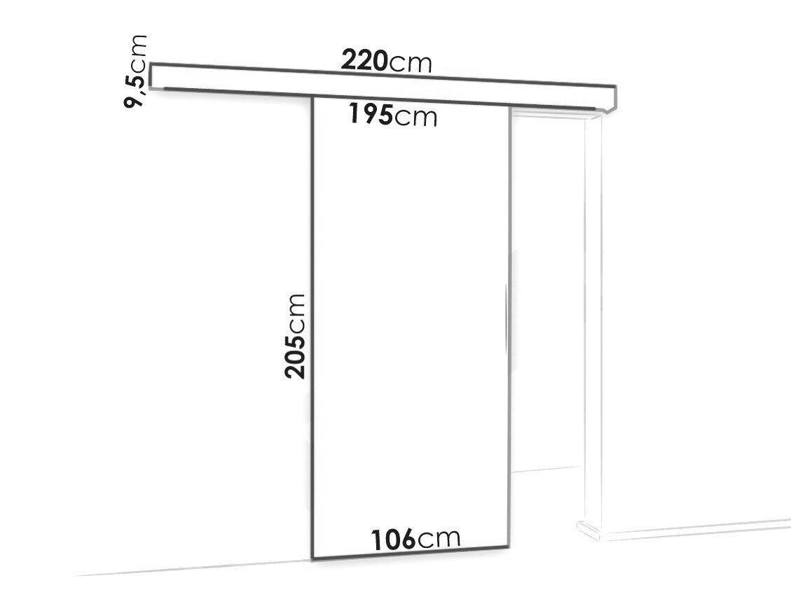Skydedørssystemets dimensioner: