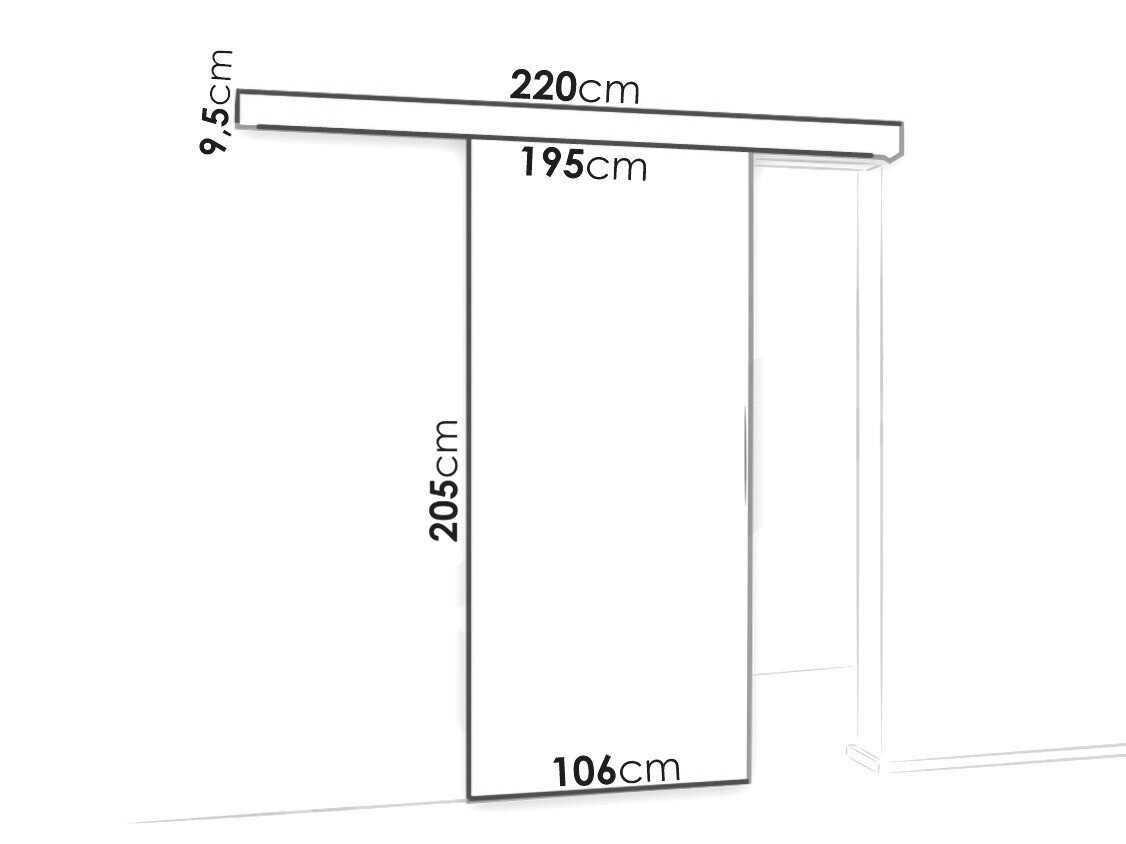 Skydedørssystemets dimensioner: