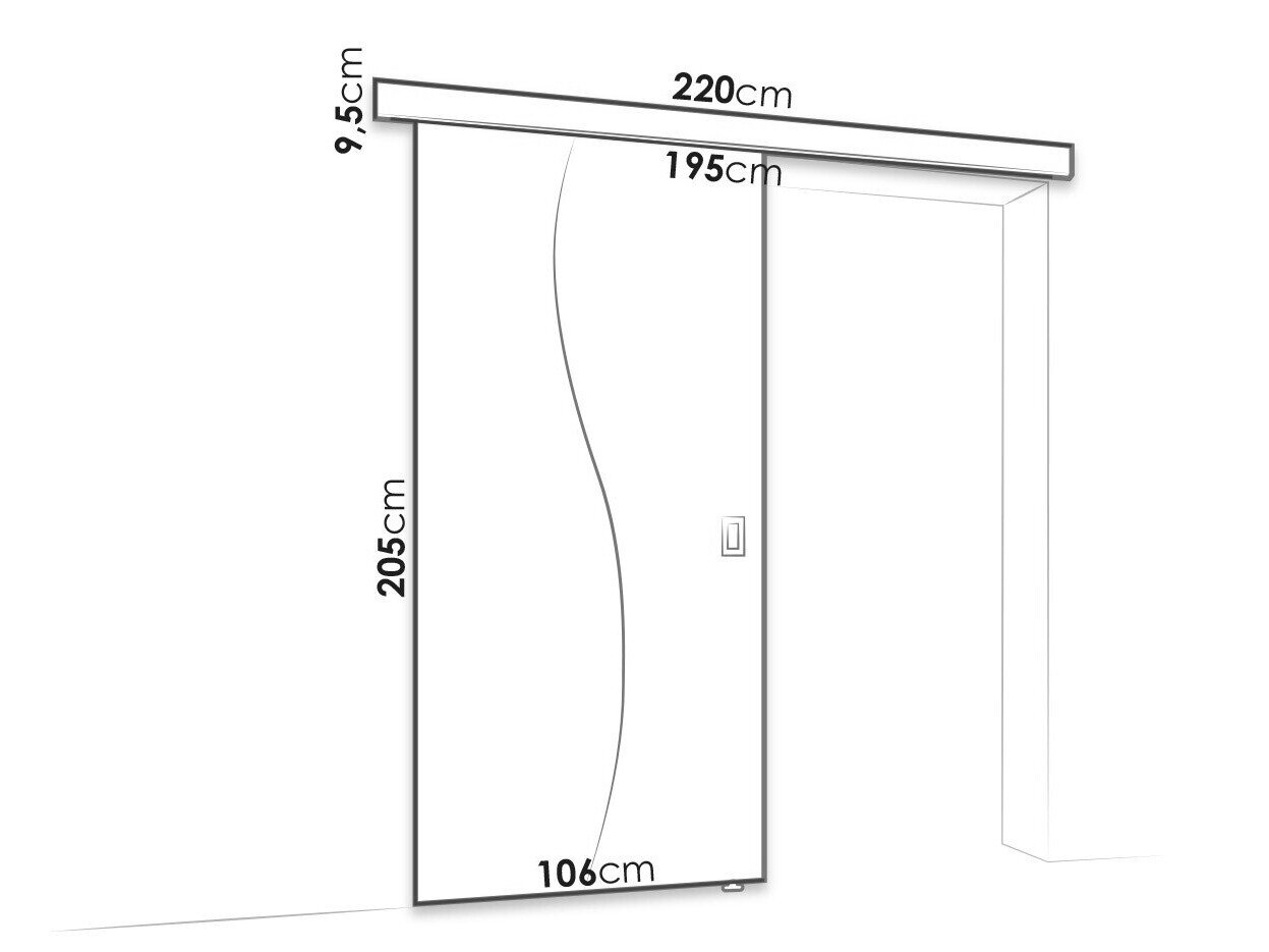 Skydedørssystemets dimensioner: