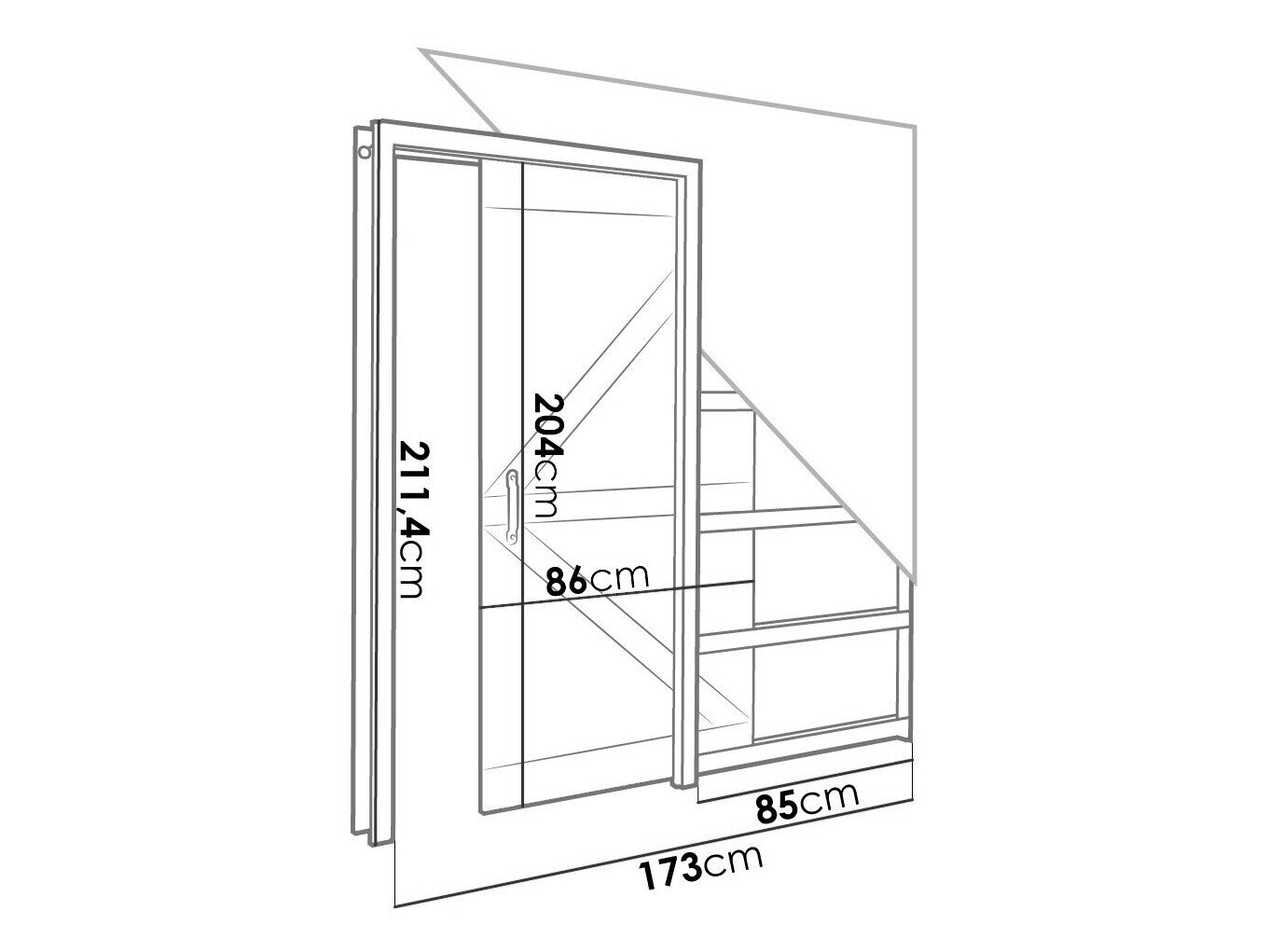 Skydedørssystemets dimensioner: