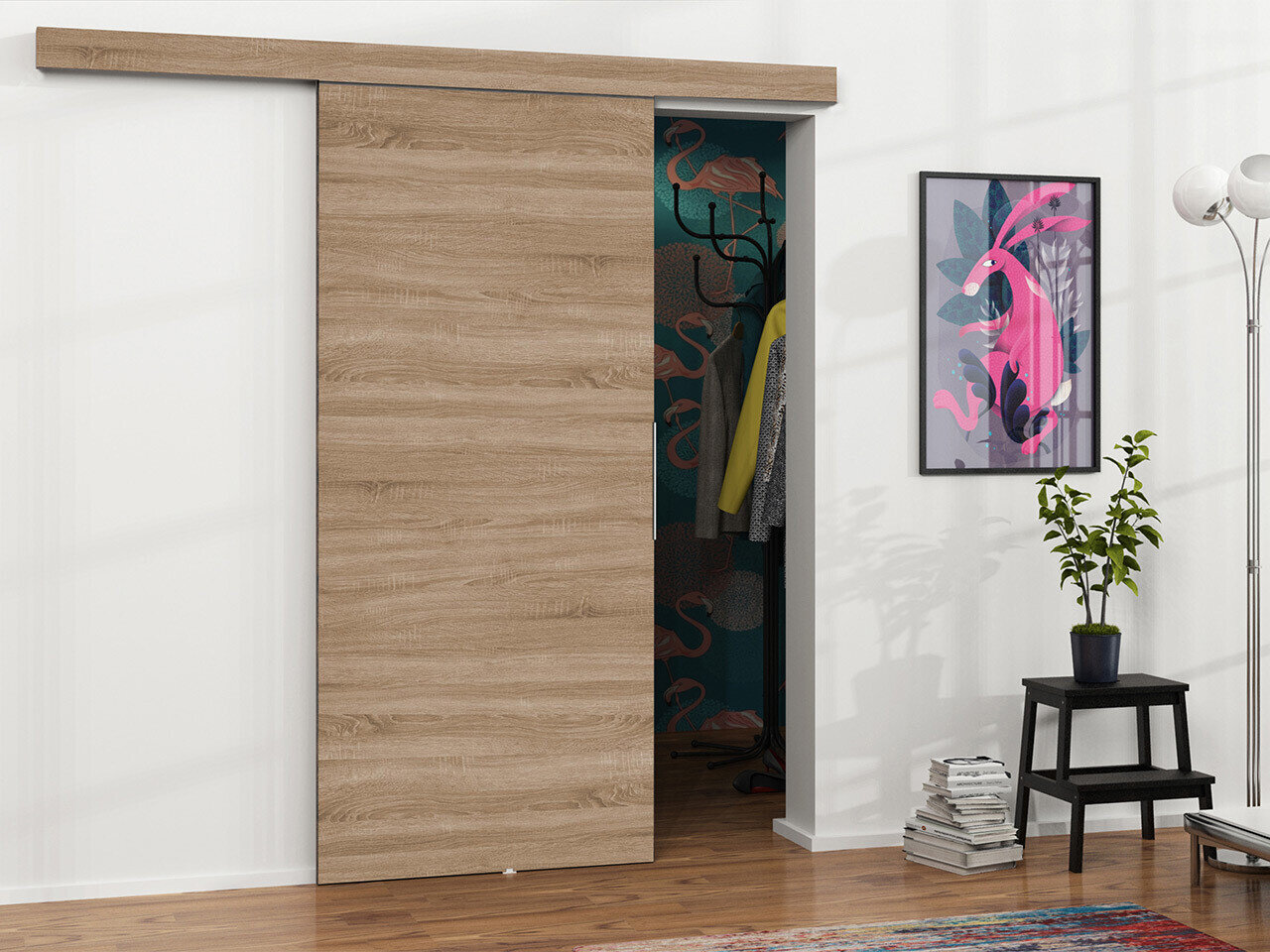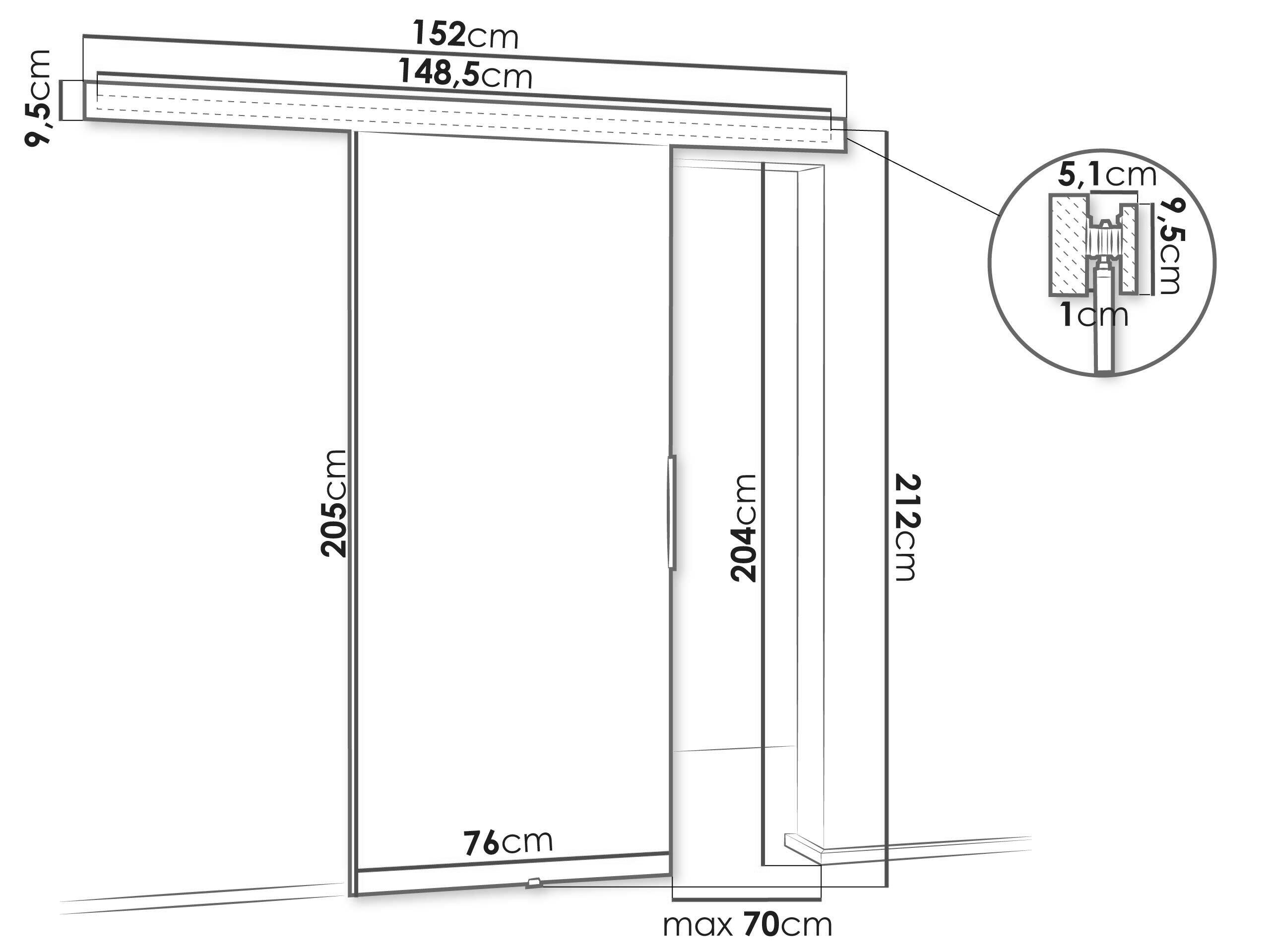 Skydedørssystemets dimensioner: