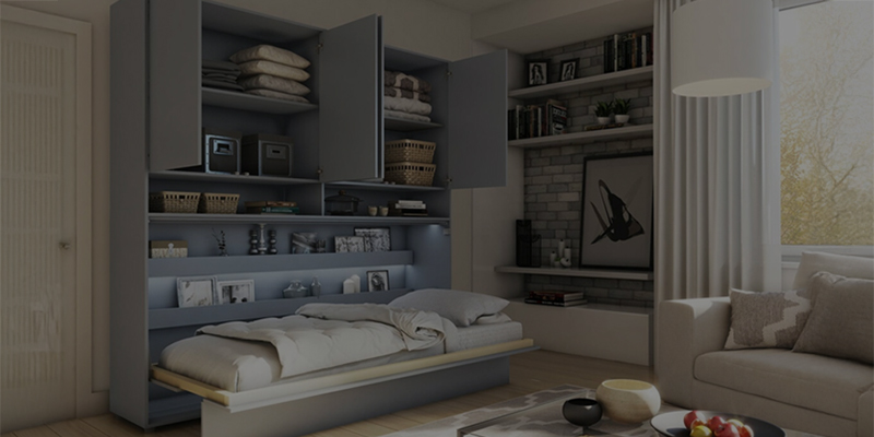Et godt eksempel på funktionalitet og minimalistisk møbeldesign. En travl stue eller børnenes legeplads om aftenen bliver nemt til et behageligt soveværelse.