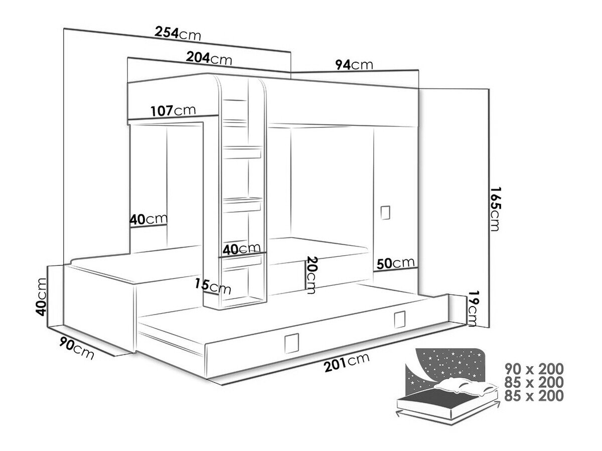 - 85 x 200 cm