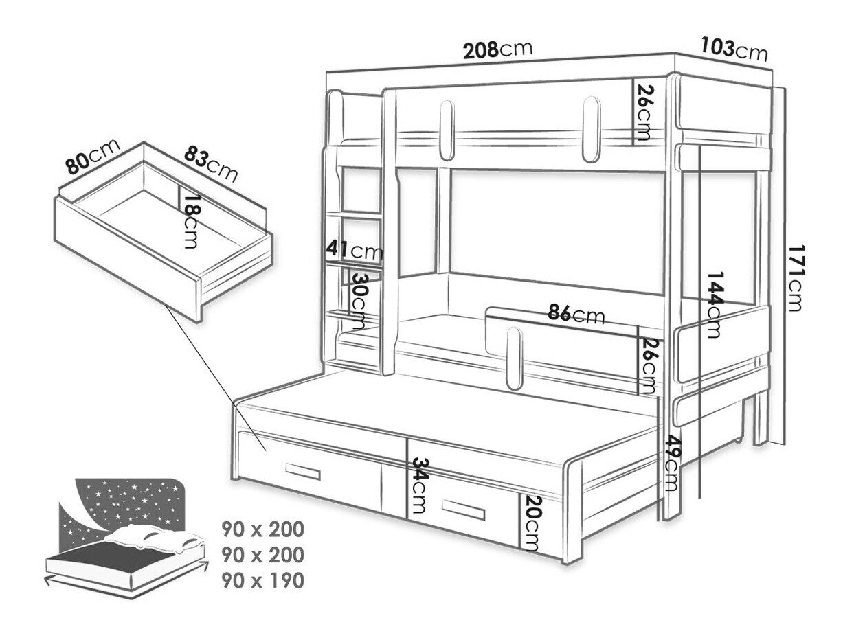 - 90 x 200 cm