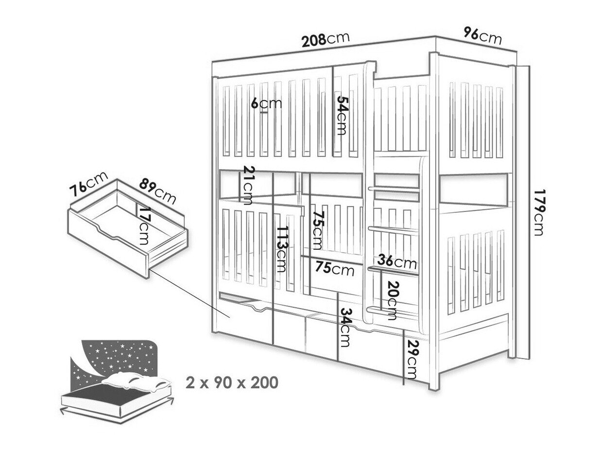 - 90 x 200 cm