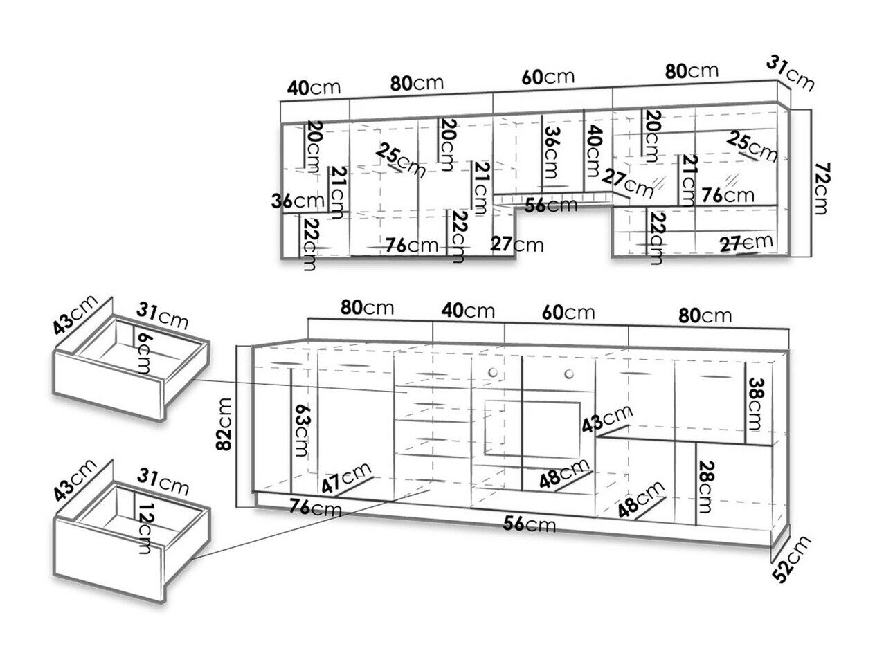 Vægskabets højde: