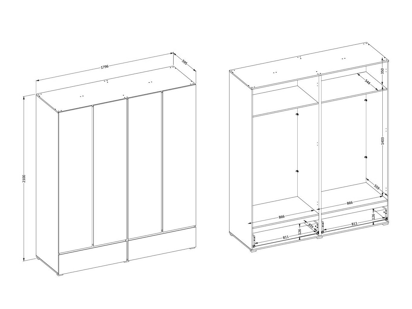 210 cm  179.6 cm  59.5 cm